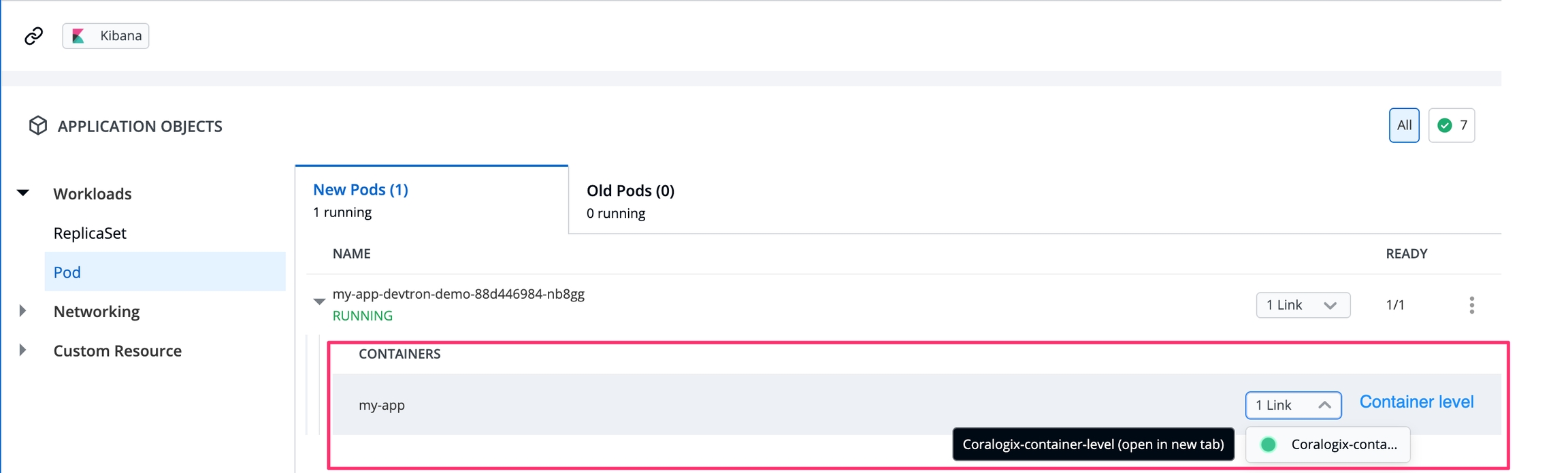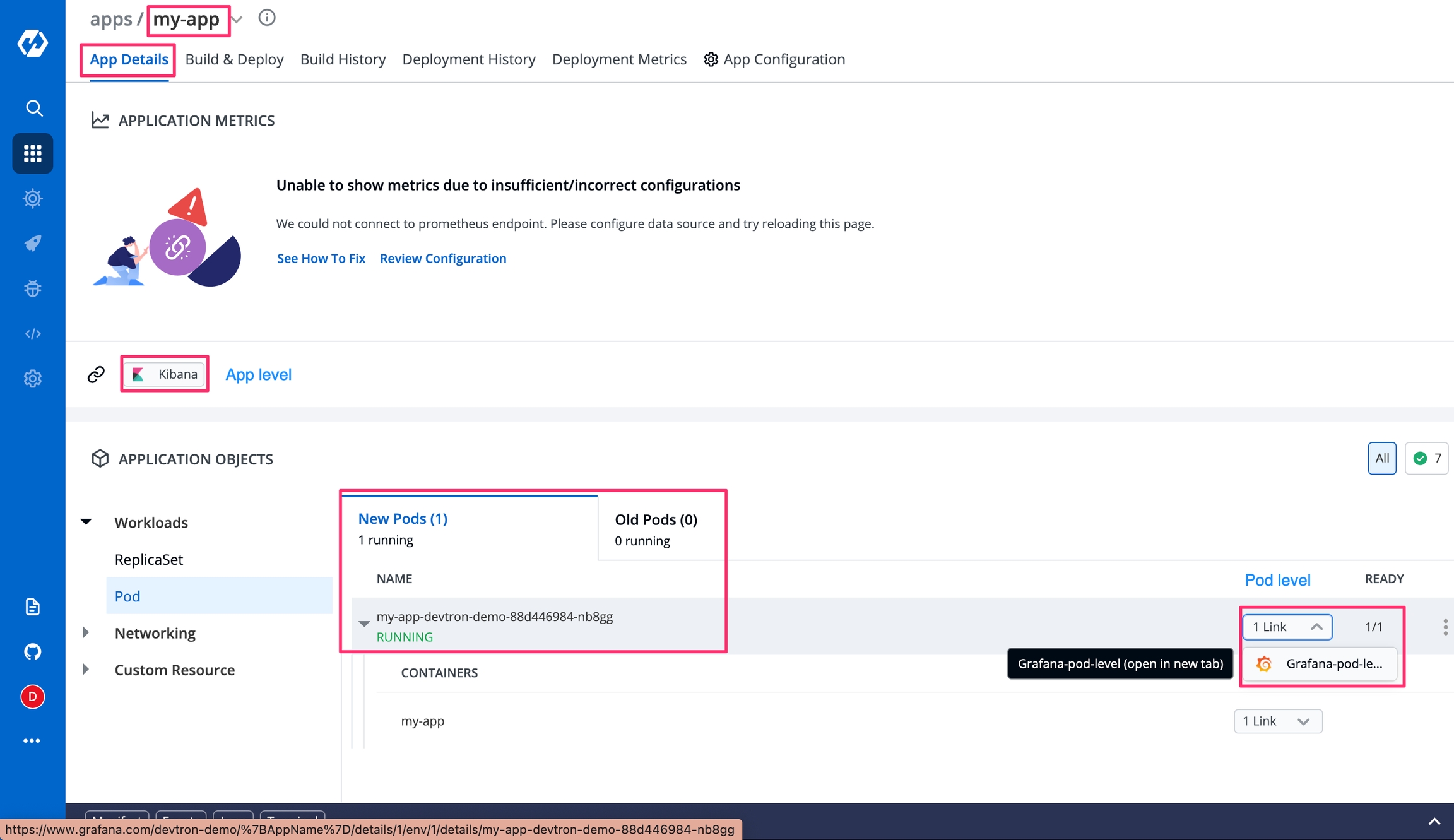 Note: The external link configured on the cluster where your app is located is the only one that is visible.