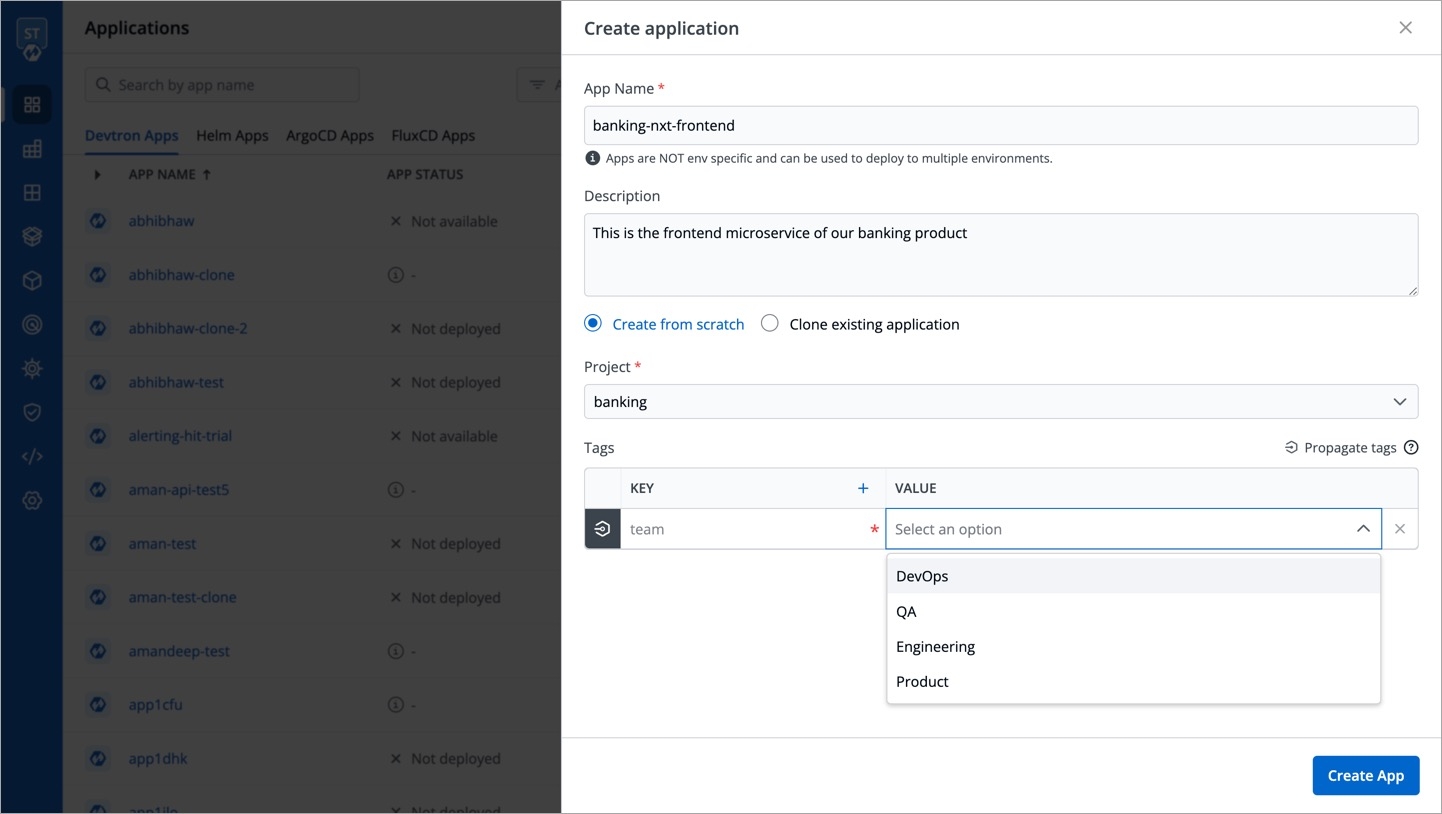 On the Devtron dashboard, select Applications.