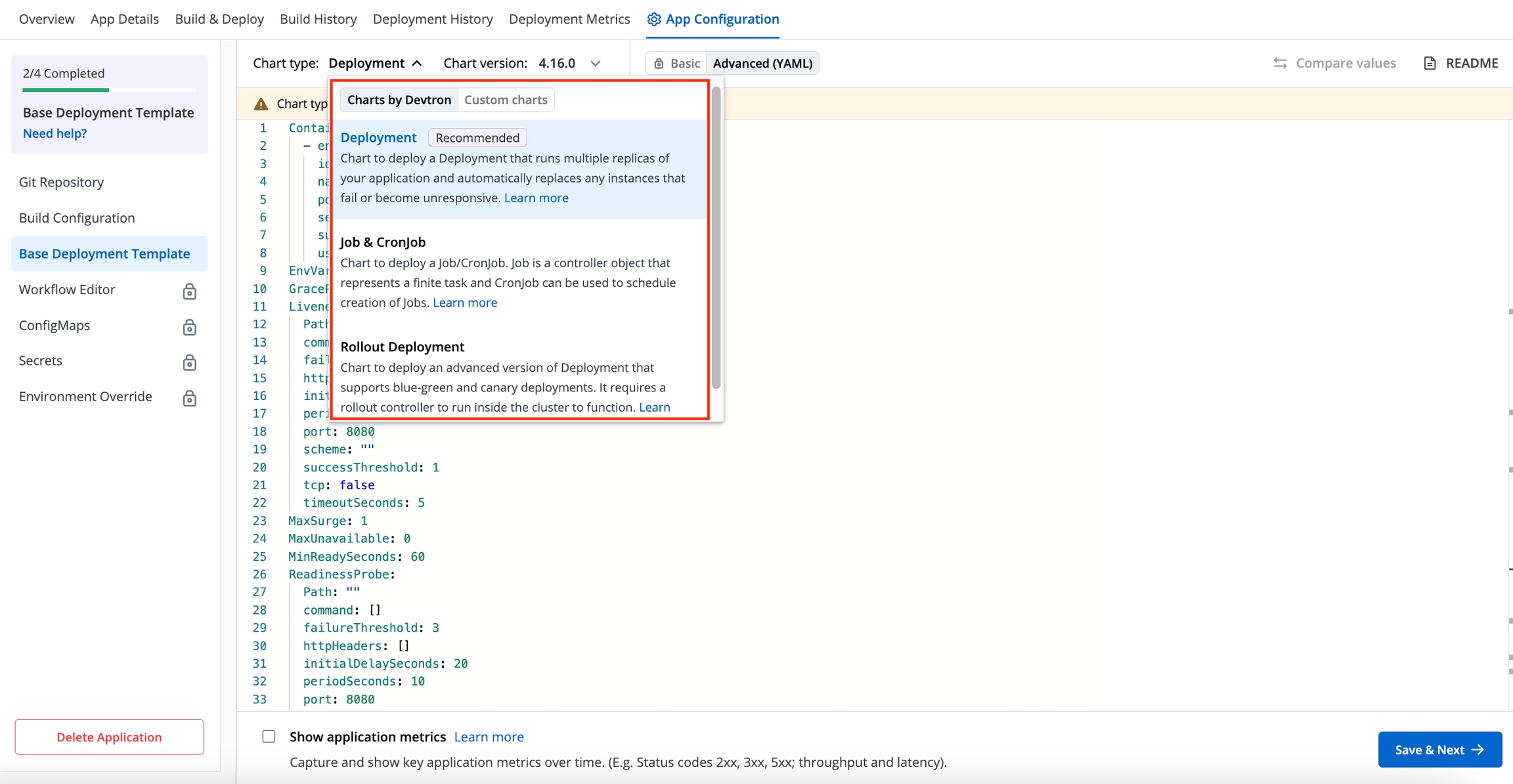 On the Base Deployment Template page, select the drop-down under Chart type.