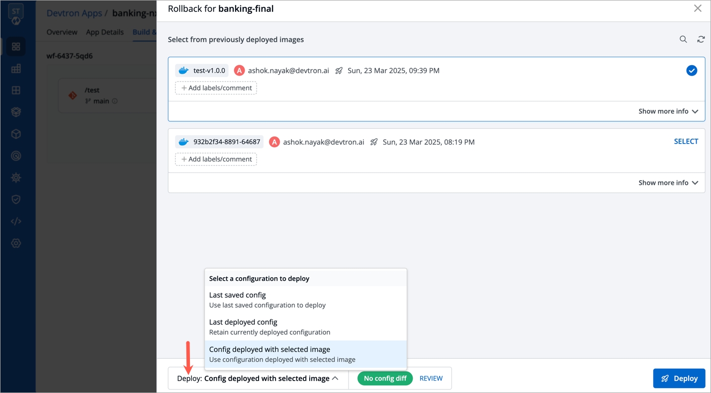 Config deployed with selected image