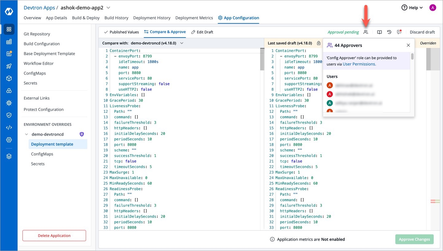 You can configure Devtron by using configuration files. Configuration files are YAML files which are user-friendly. The configuration allows you to quickly roll back a configuration change if necessary. It also aids cluster re-creation and restoration.