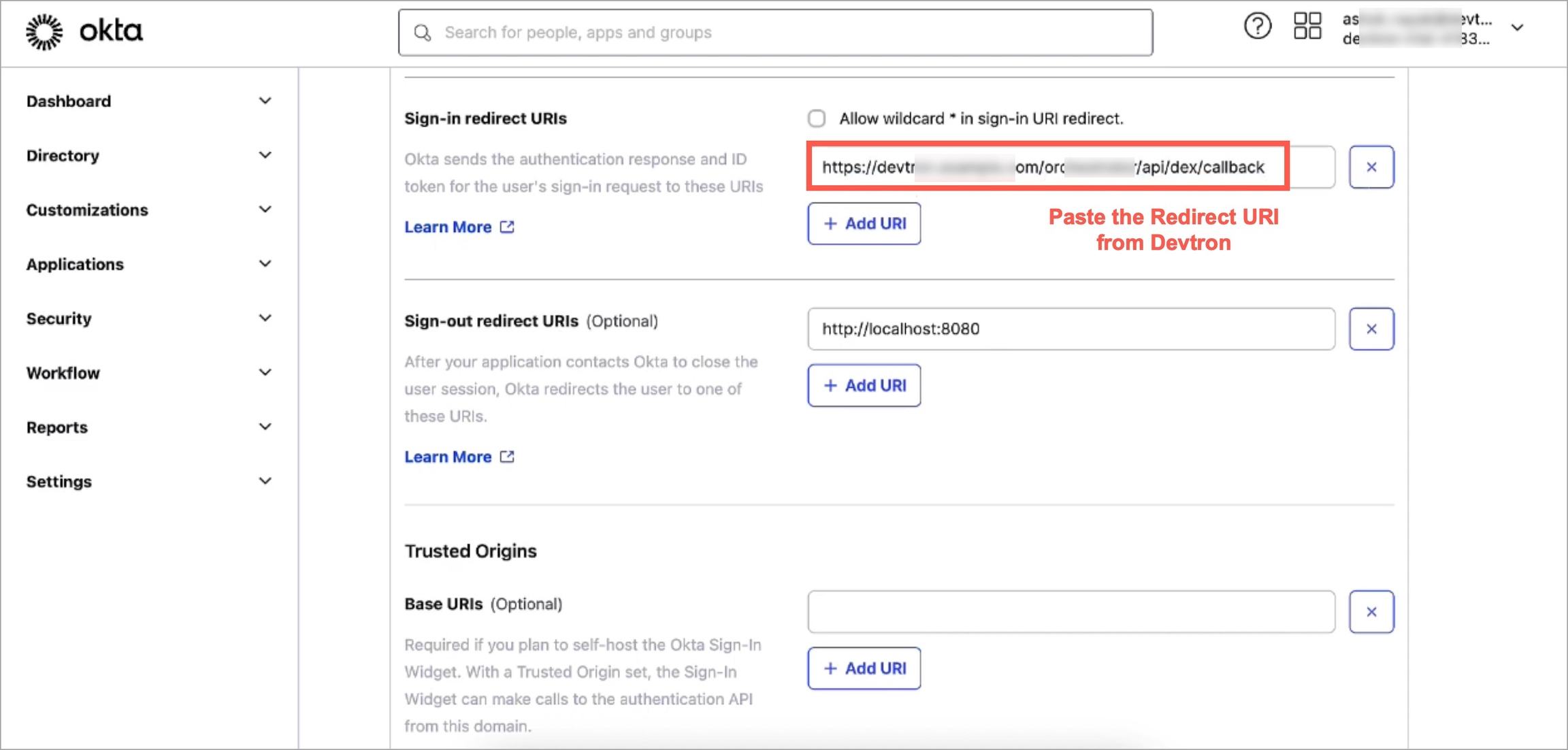 Devtron provides a sample configuration out of the box. There are some values that you need to either get from your SSO provider or give to your SSO provider.