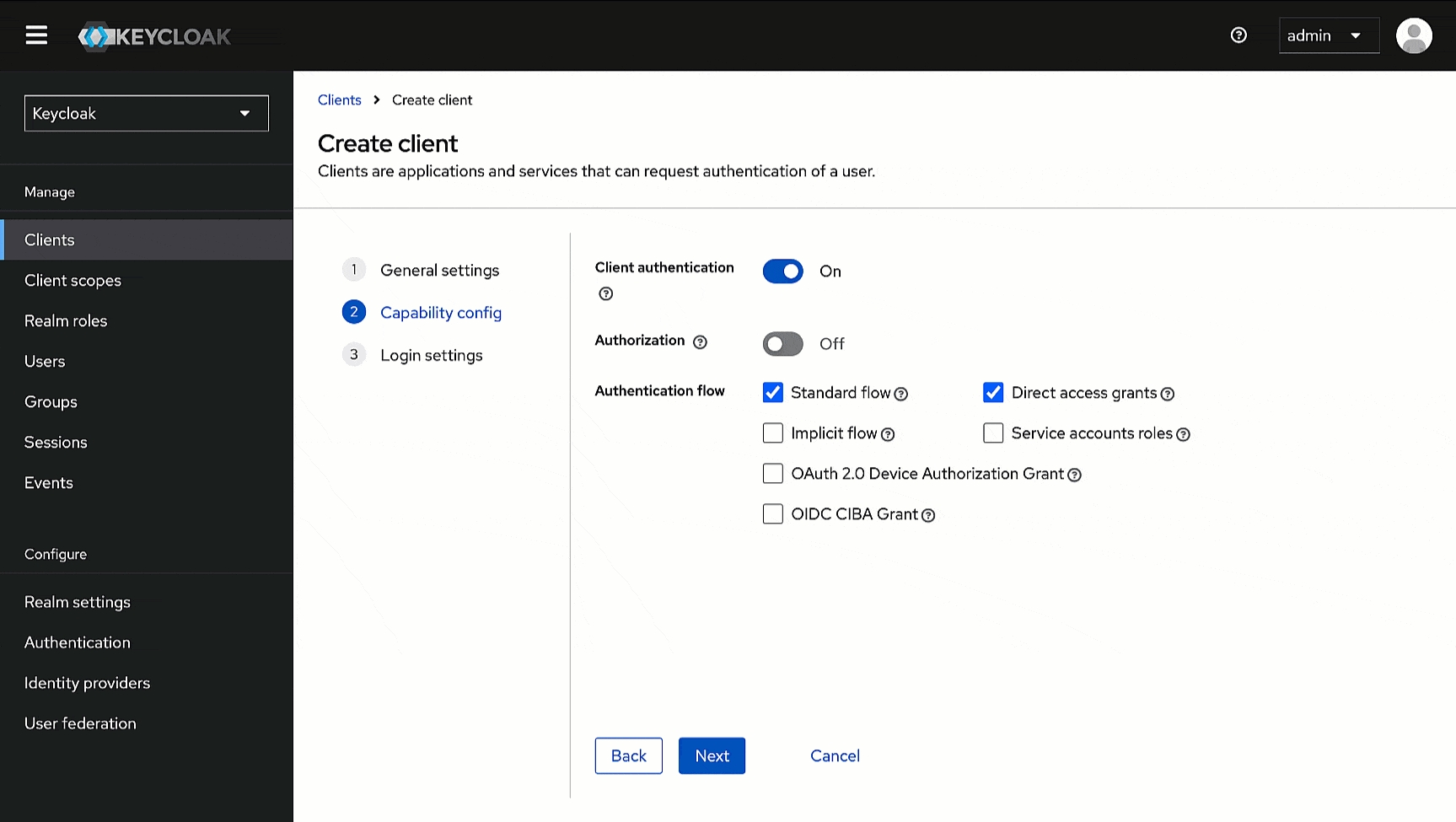 Figure 2: Client ID and Name Within Capability config, turn on Client Authentication.