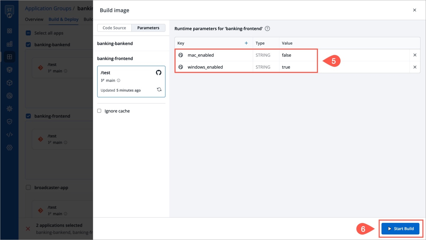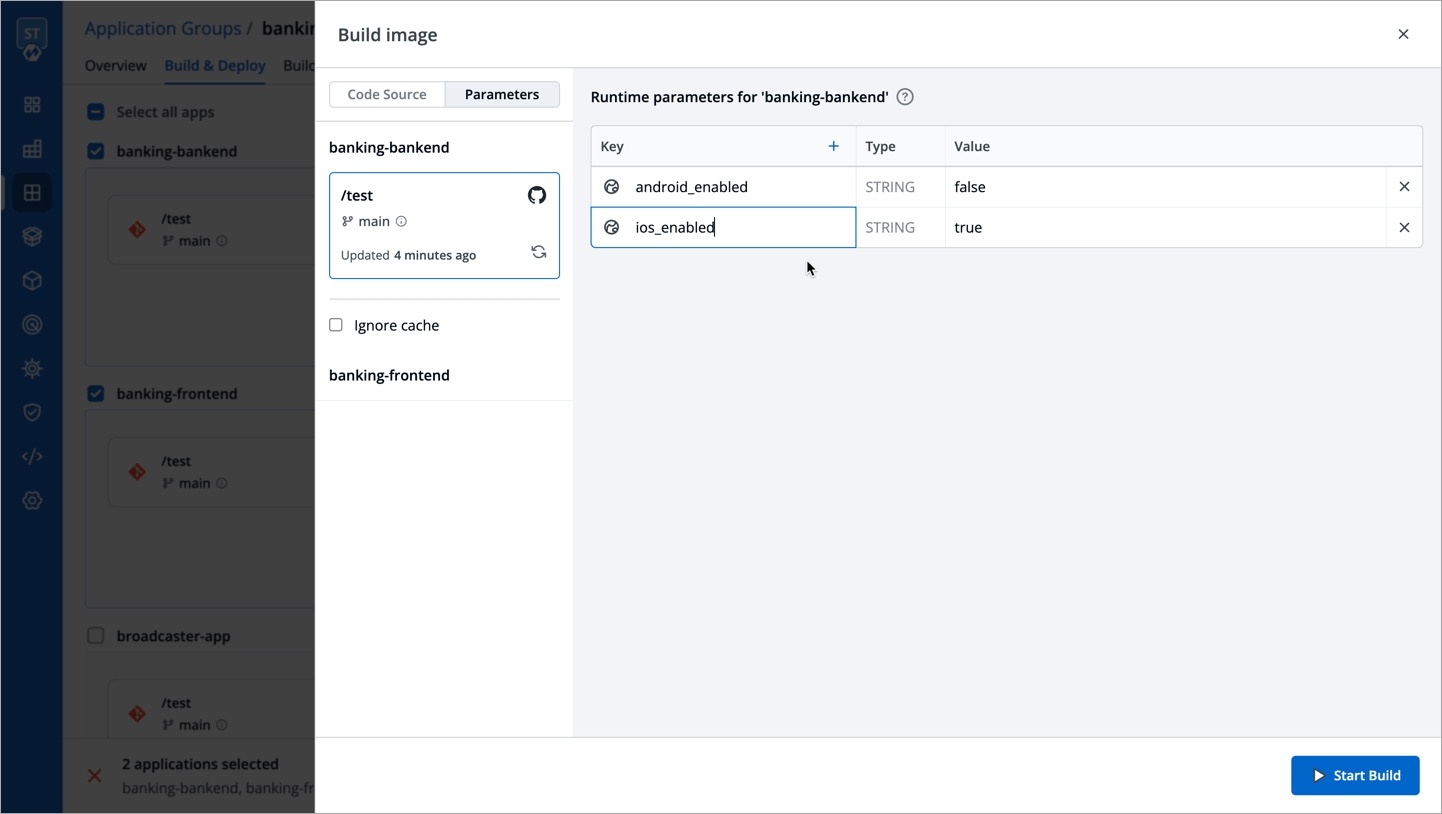 Similar to application, you can also pass build parameters in application groups before triggering the build.
