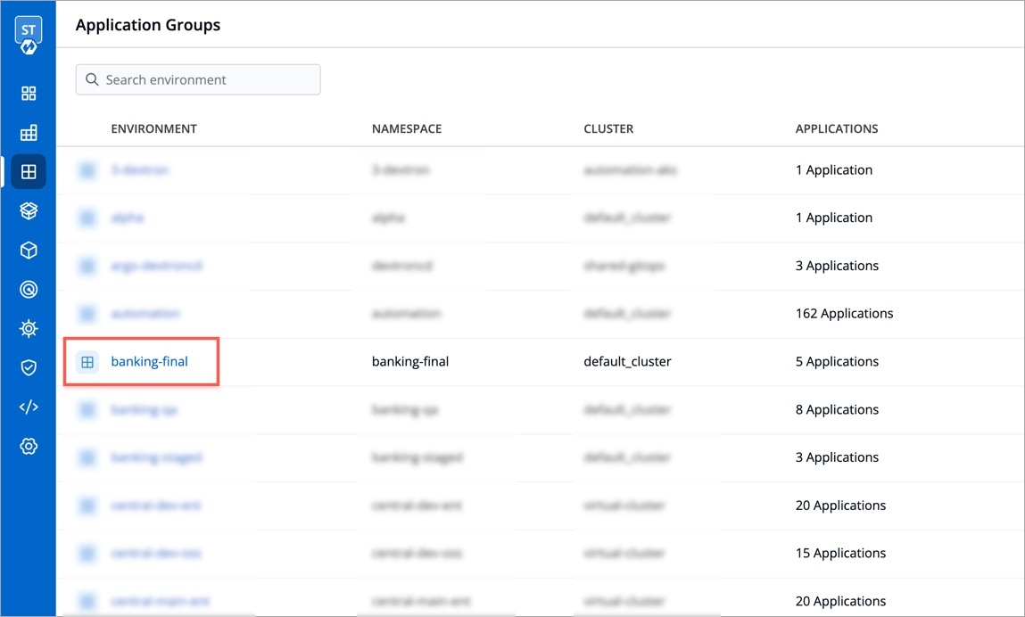 Figure 1: Application Group (Beta) You will see a list of environments. Select the environment to view the application group.