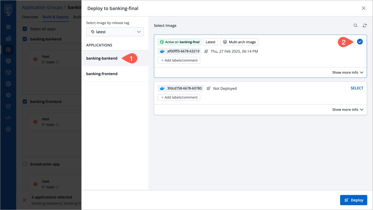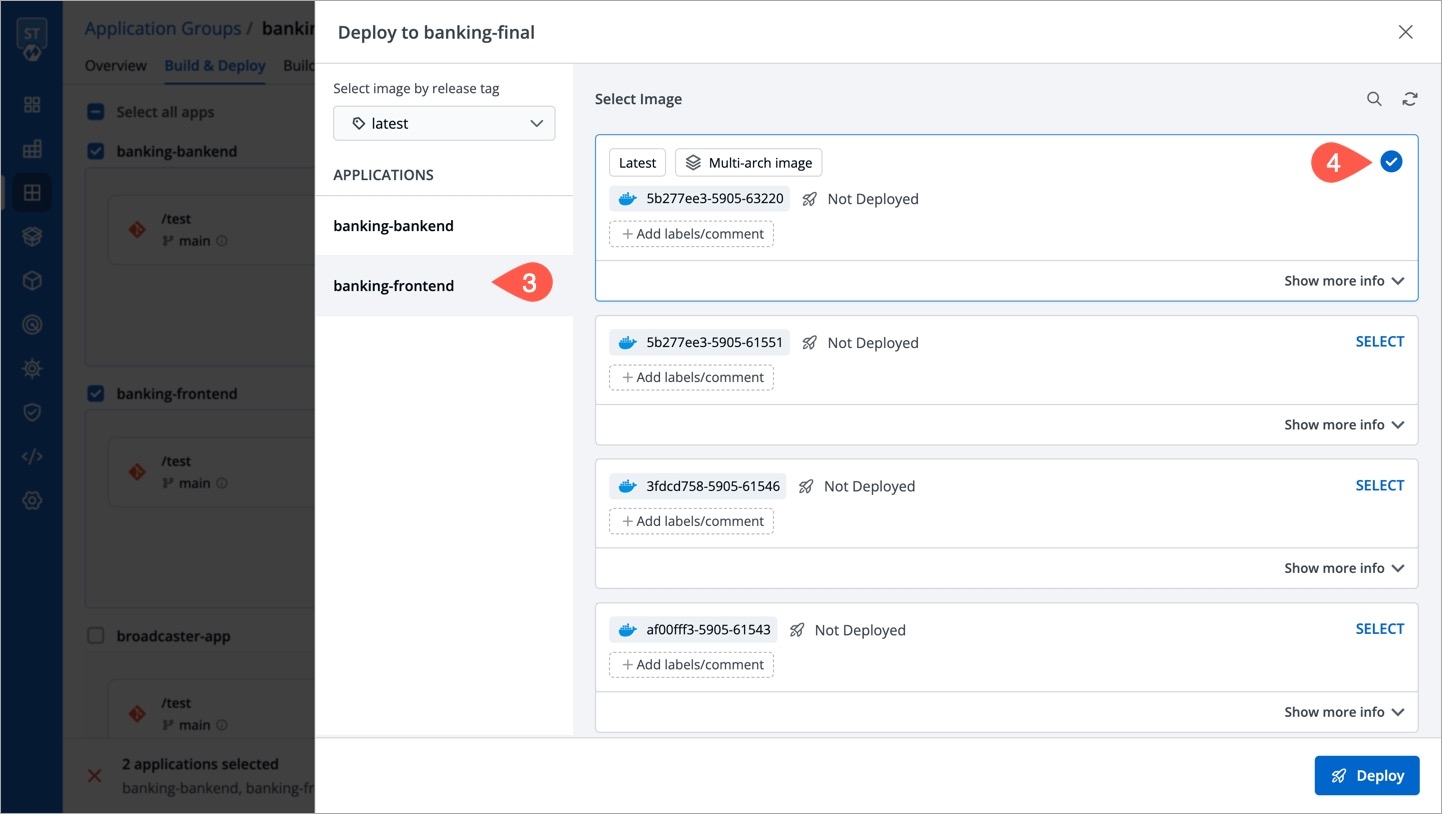 Figure 13: Deploy Option Select the desired container image that you want to deploy for respective application.