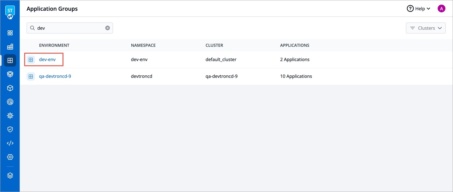 Figure 2: List of Environments The application group would contain the applications meant for deployment in the chosen environment.