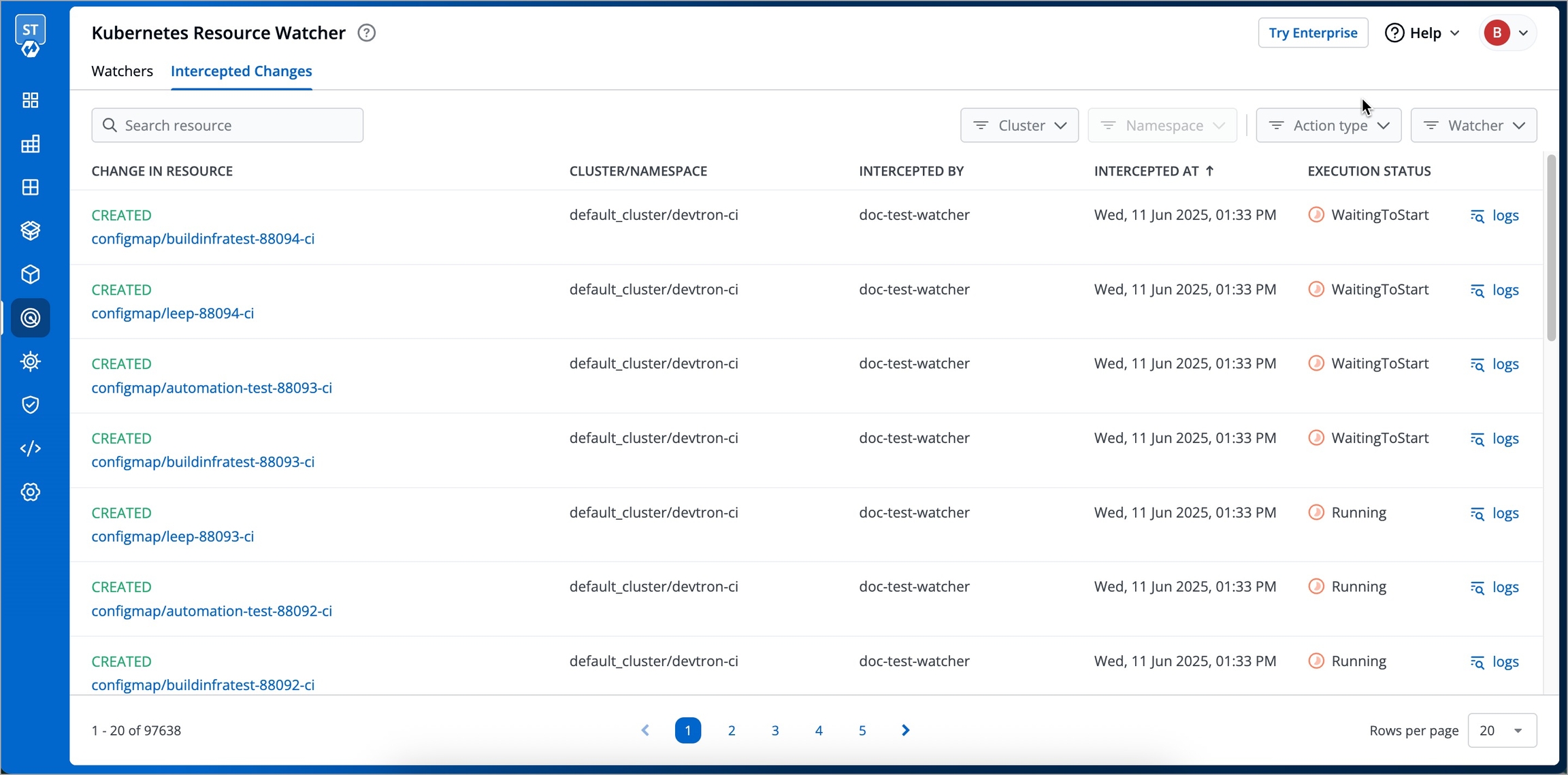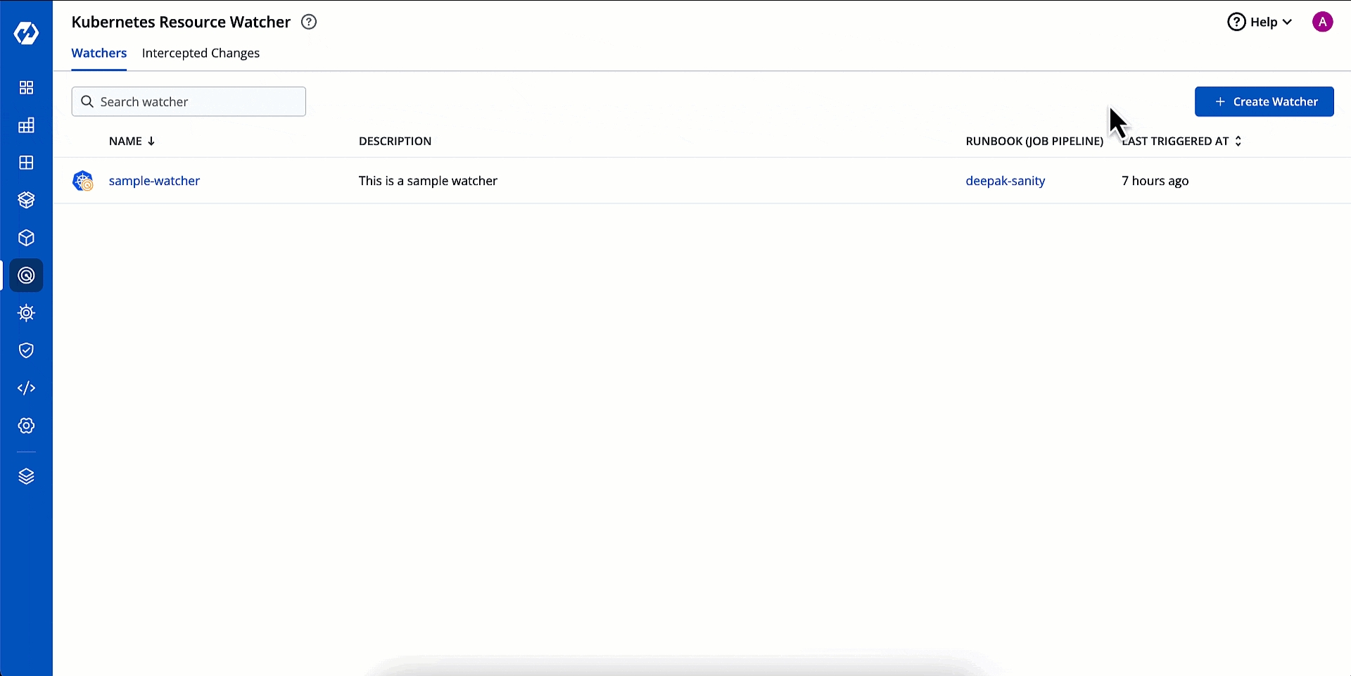 The watcher is now ready to intercept changes to selected resources and execute the configured job.