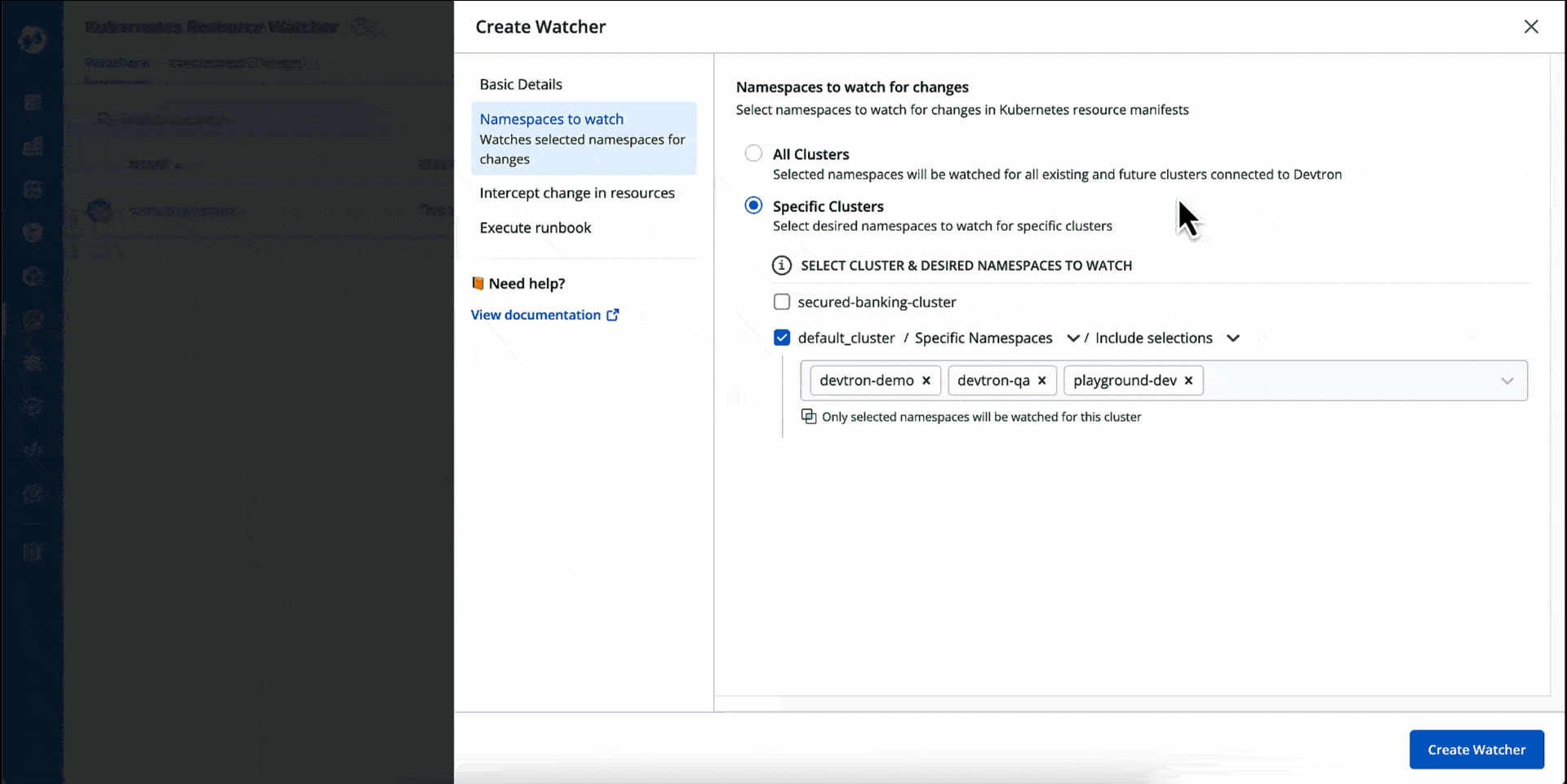 Here, you can select the namespaces whose Kubernetes resource you wish to monitor for changes.
