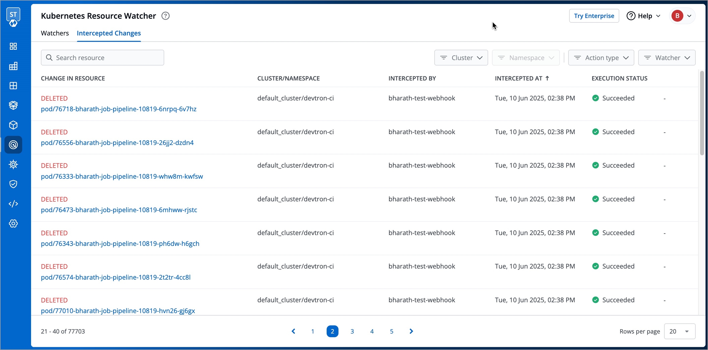 The watcher is now ready to intercept changes to selected resources and trigger the webhook.