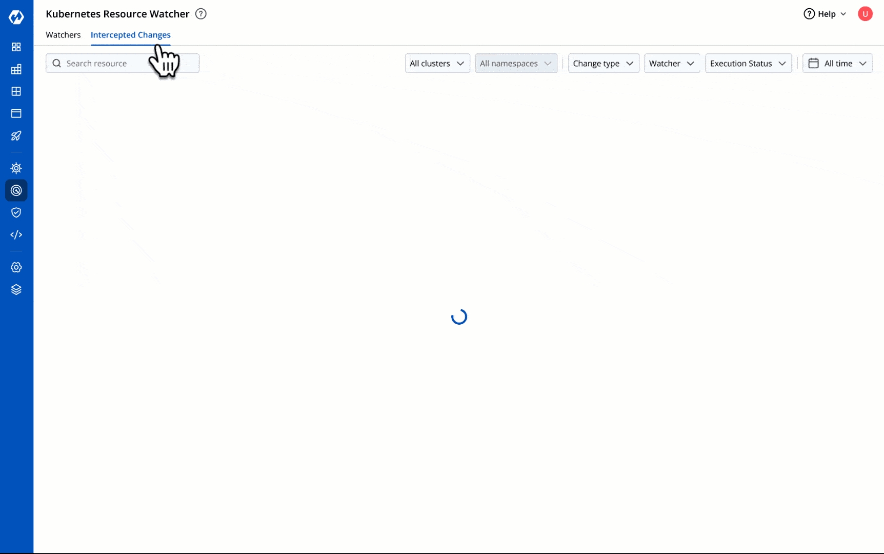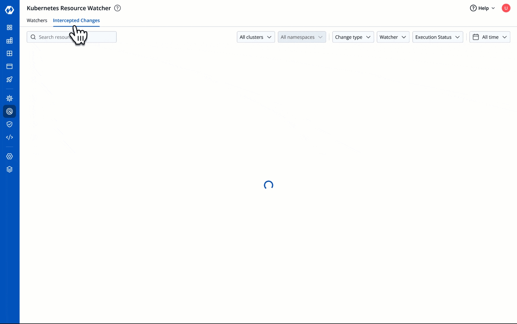 This page allows you to view the changes to Kubernetes resources that you have selected for tracking changes.