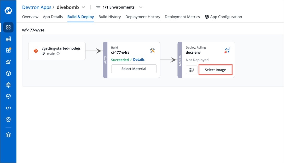 Figure 6: Defining a Block Policy Now, go to the Build & Deploy tab of that application to select an image.