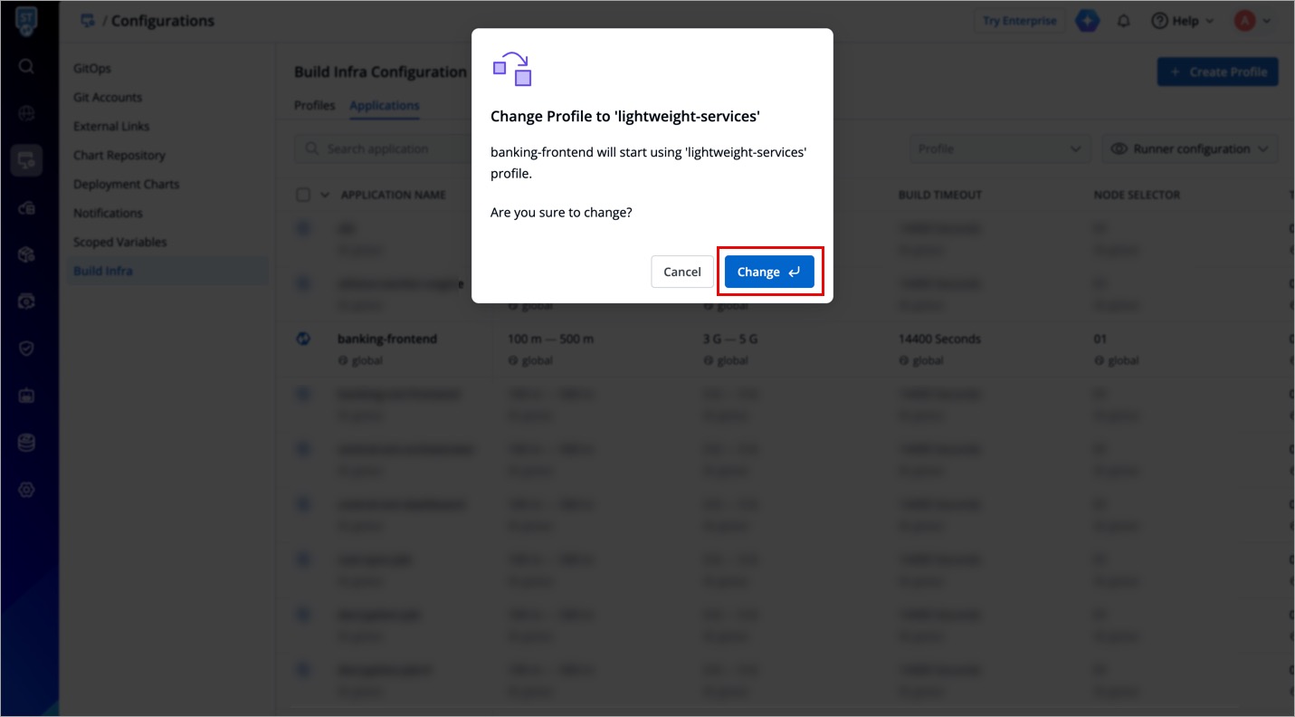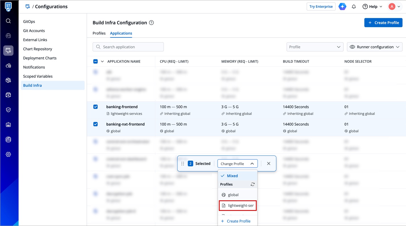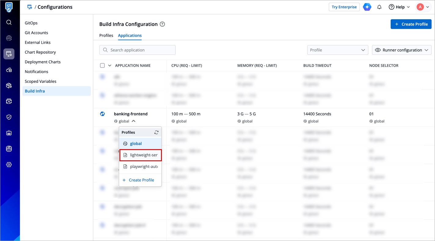 Instead of global profile, you can create custom profiles having different infra configurations. Example: One profile for Python apps, a second profile for large apps, and a third profile for small apps, and many more.