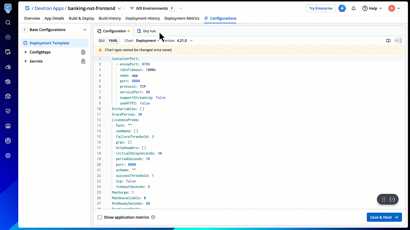 In this example, we will edit the Deployment chart type provided by Devtron.