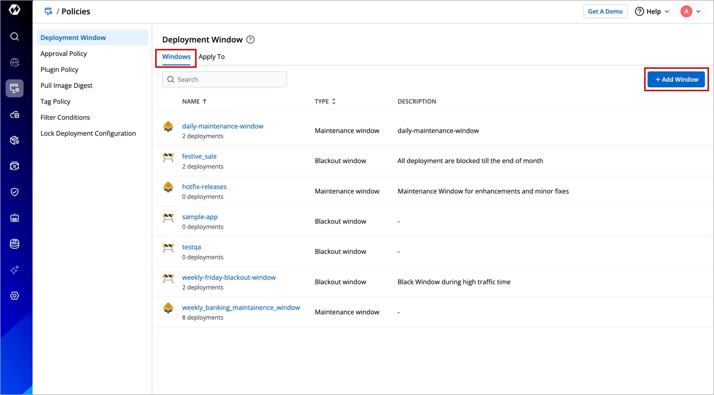 Choose a deployment window type, i.e., maintenance window or blackout window.