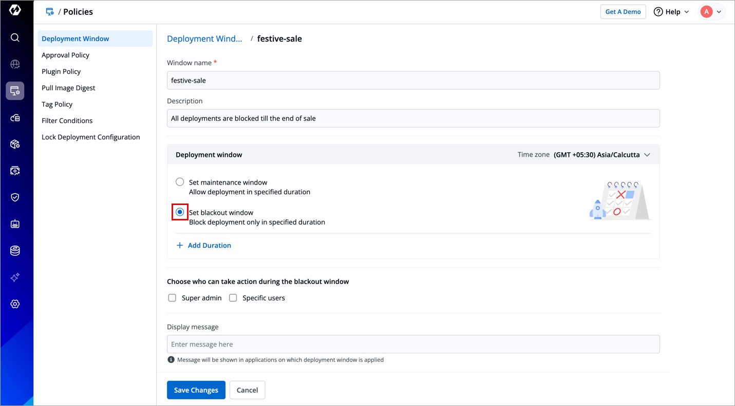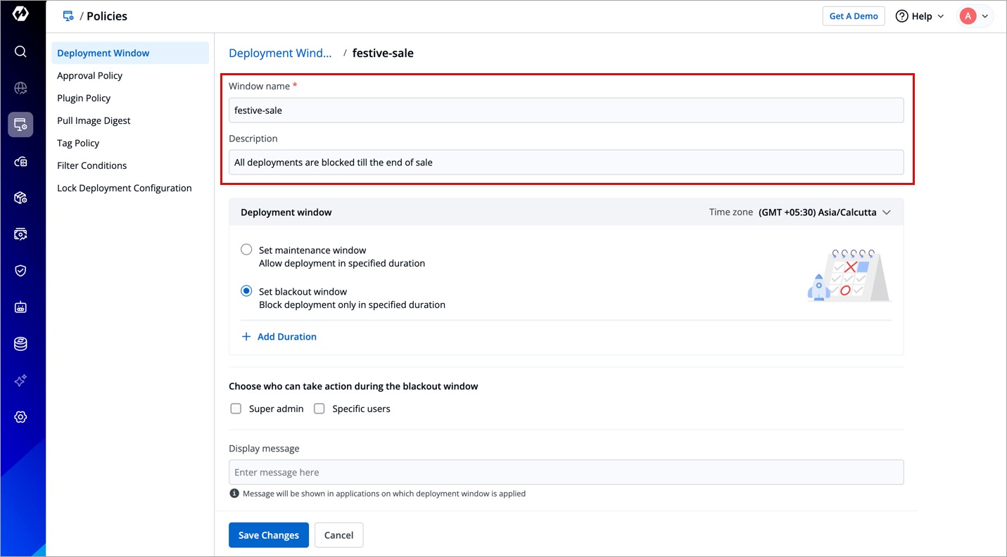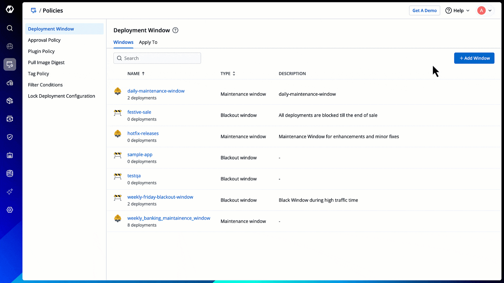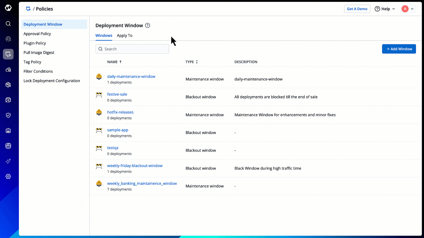- Type of deployment window (Blackout/Maintenance)