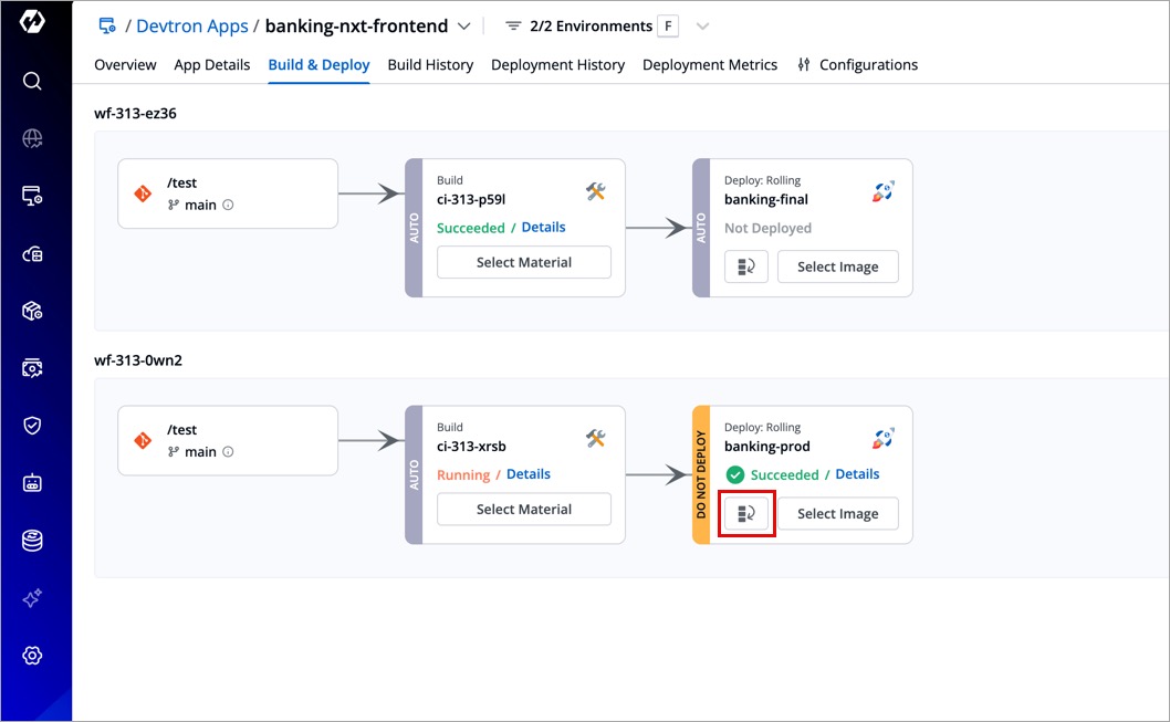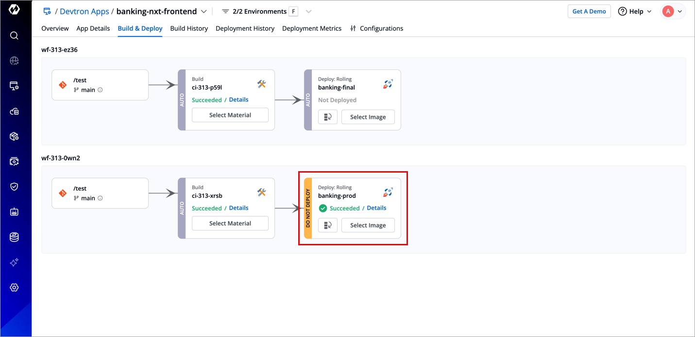 Go to the Build & Deploy tab. The CD pipelines with restricted deployment will carry a DO NOT DEPLOY label.