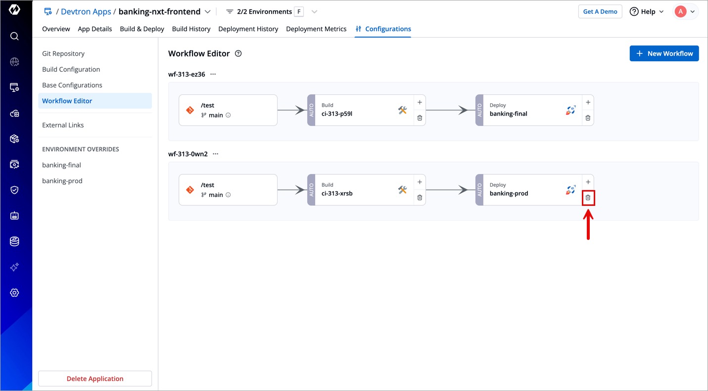 In Devtron, deleting a CD pipeline affects the current state of the deployed application. Moreover, it might impact future deployments and you will also lose information about past deployments, i.e., Deployment History.