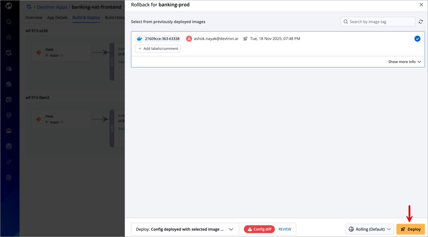 Rolling back to an older version, by using a previously deployed image, is barred during a deployment block.