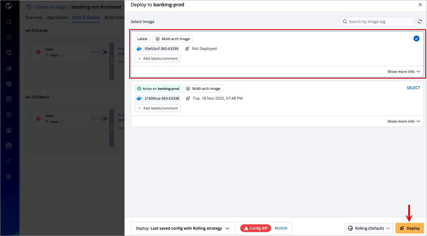 Despite that, if a user selects an eligible image and proceeds to deploy, it will show Deployment is blocked along with a list of exempted users who are allowed to deploy.