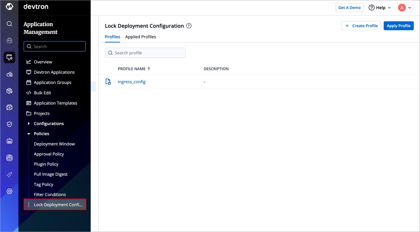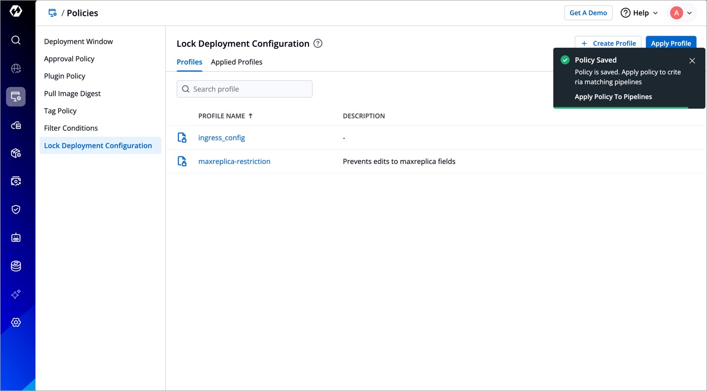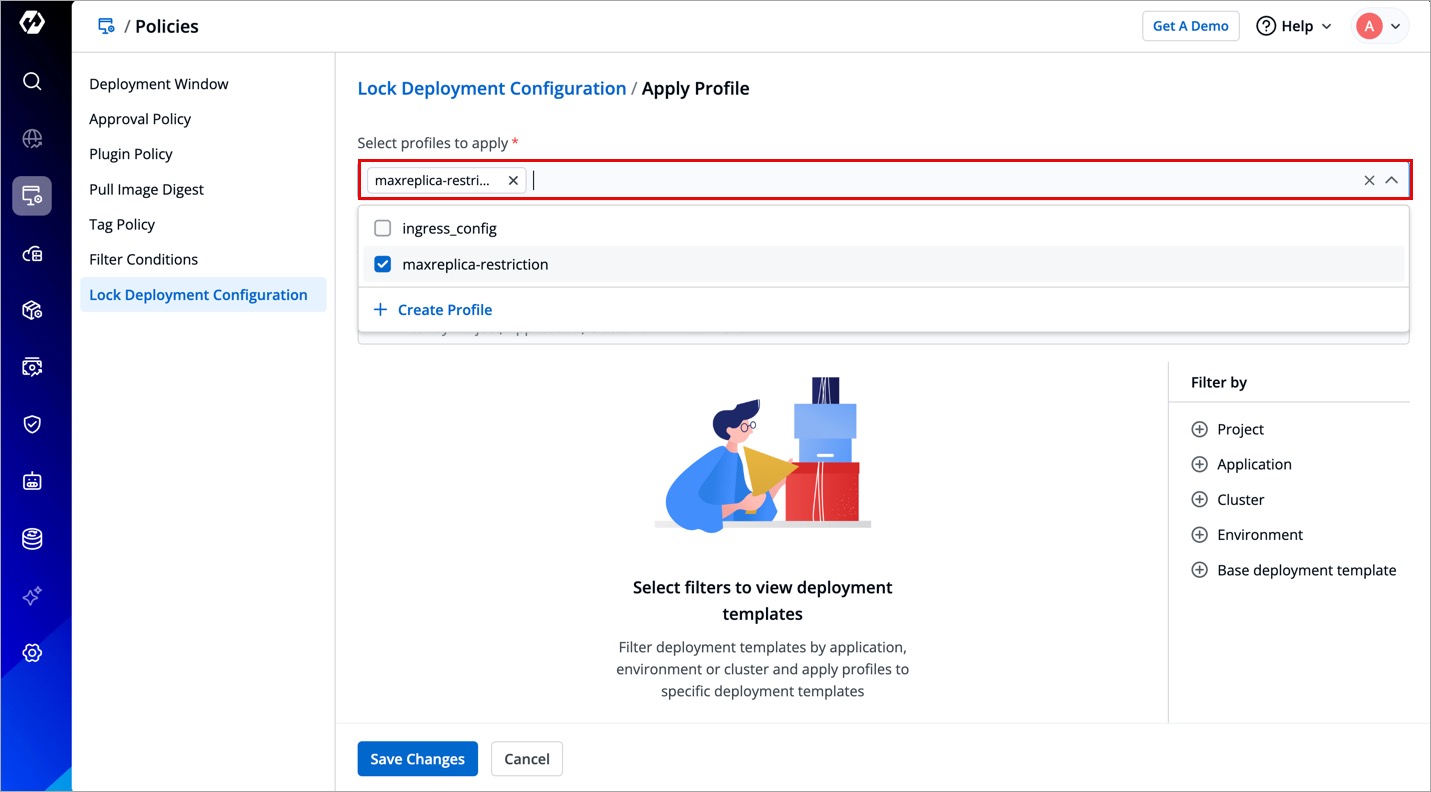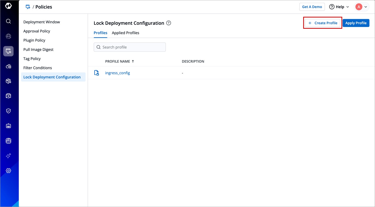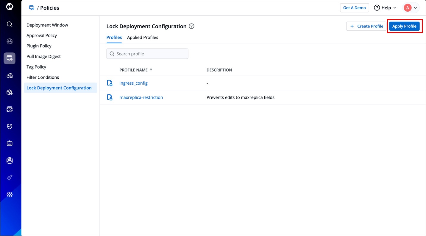 To lock deployment configurations, you must first create a profile and apply it to the specific deployment templates.