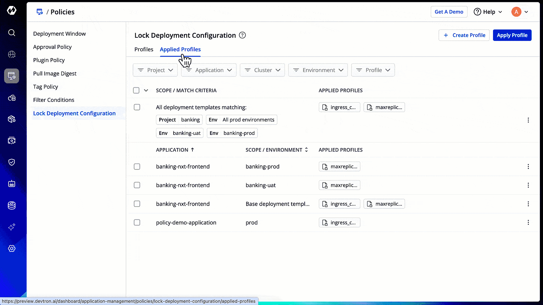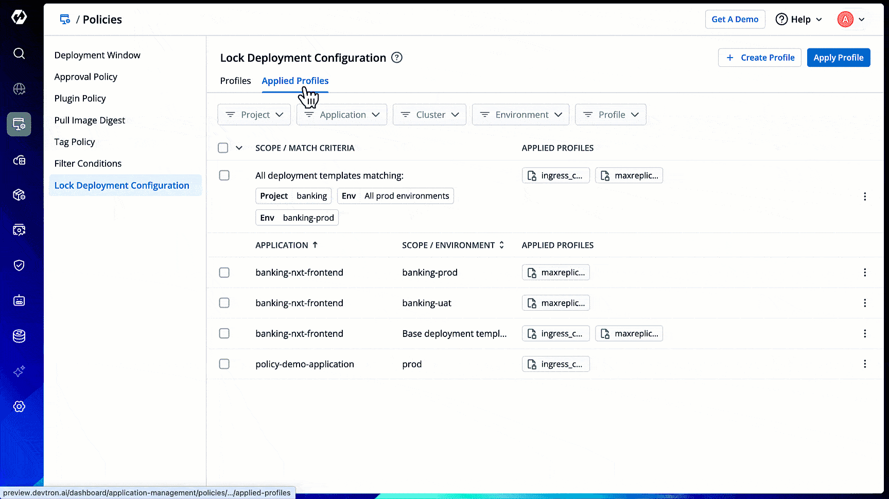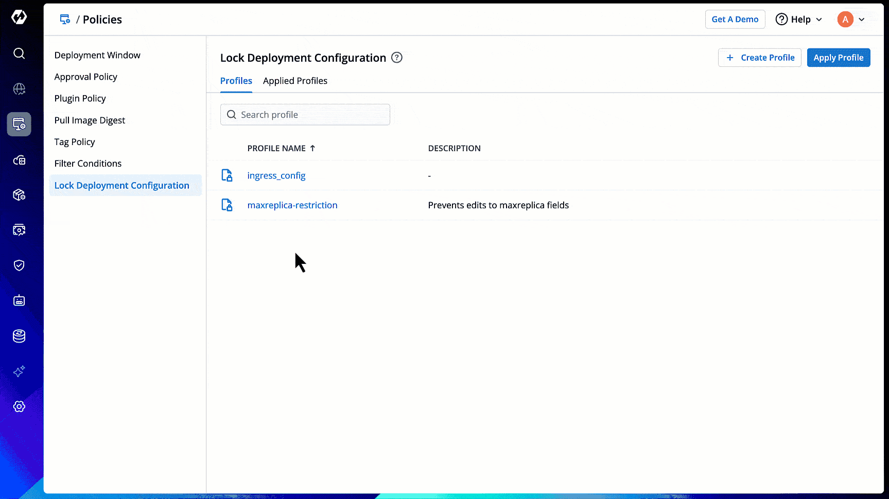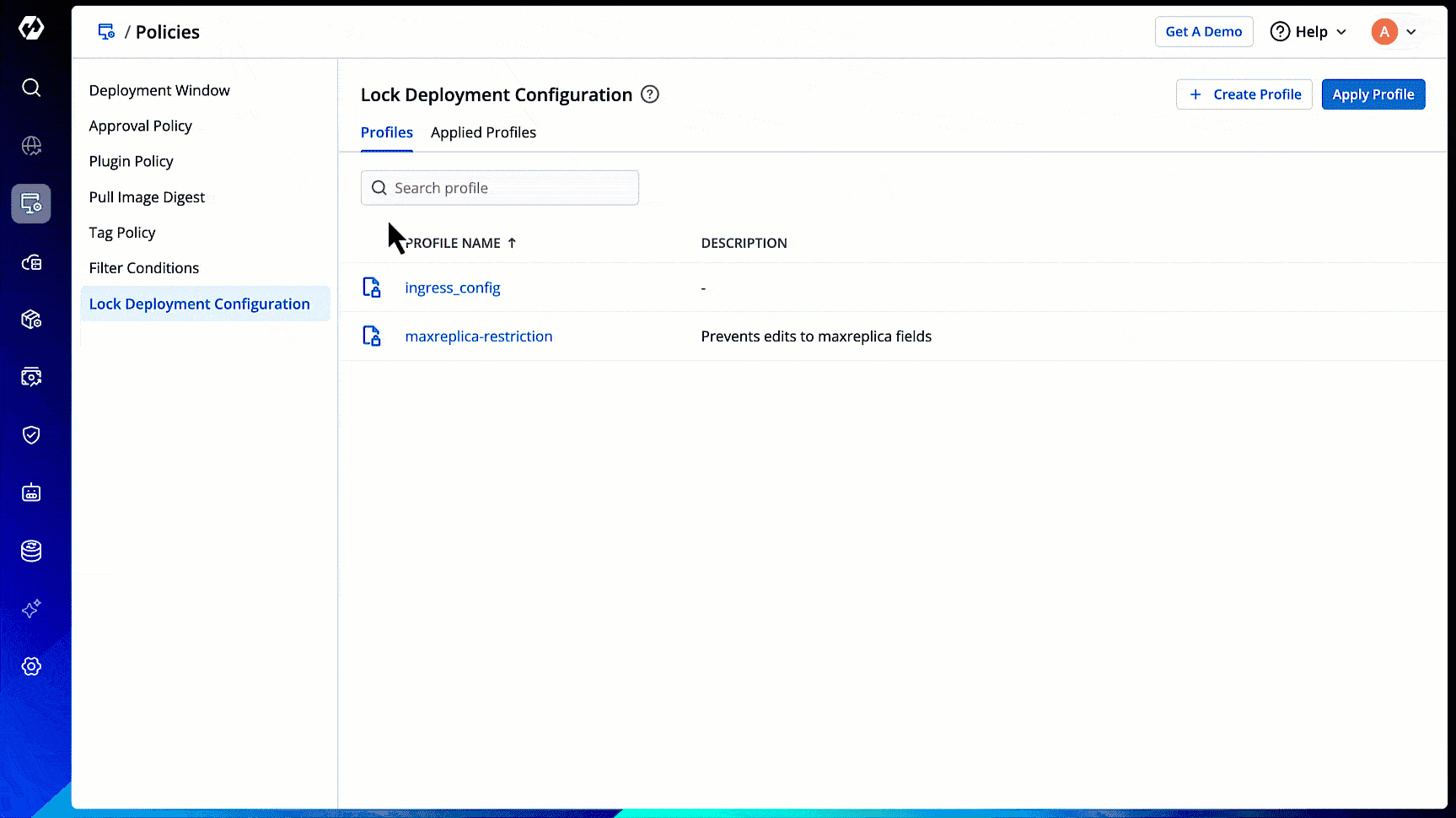To lock deployment configurations, you must first create a profile and apply it to the specific deployment templates.