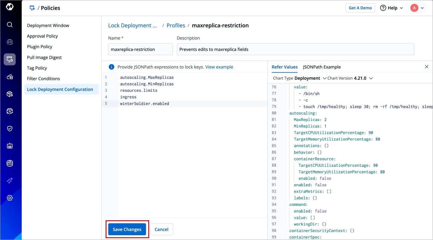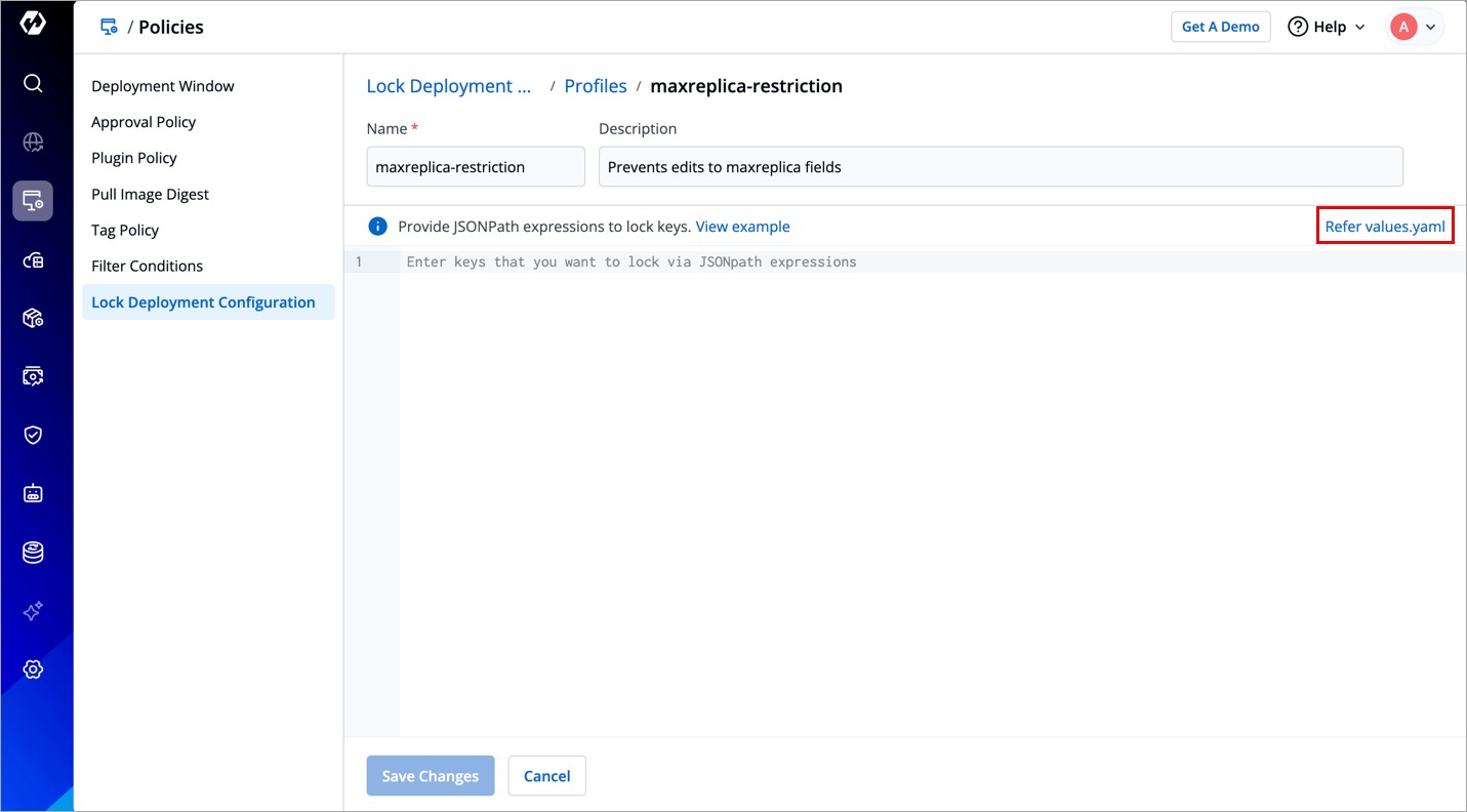 (Optional) Click Refer values.yaml to check which keys you wish to lock.