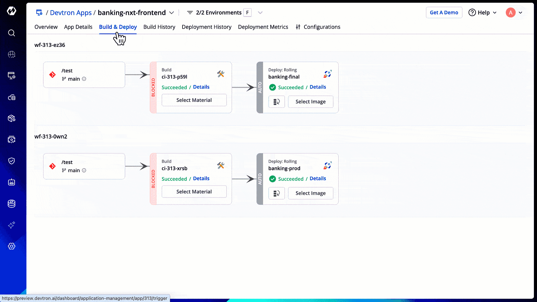 Once you apply the plugin policy, you can view the pipelines that are not adhering to your policy as shown below. Clicking on the non-compliant pipeline will take you directly to the application workflow prompting you to take action.