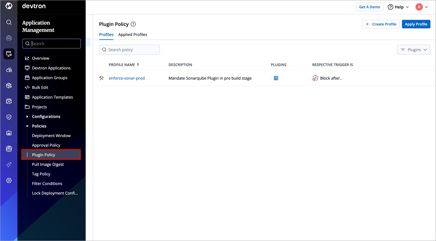 Go to Application Management → Policies → Plugin Policy.