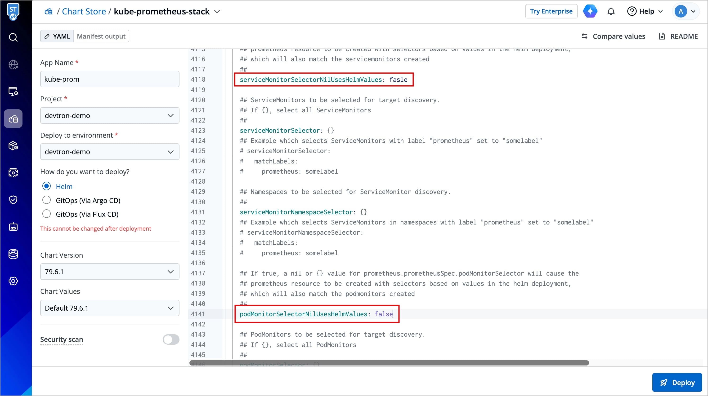 Ensure GitOps is configured before deploying Prometheus. If not, Prometheus will default to being deployed via Helm.