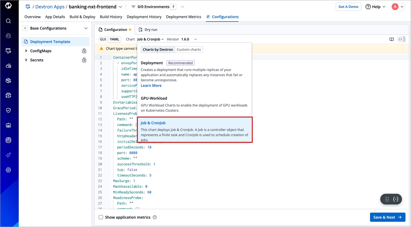Super-admins can lock keys in Job & CronJob deployment template to prevent non-super-admins from modifying those locked keys. Refer Lock Deployment Configuration to know more.