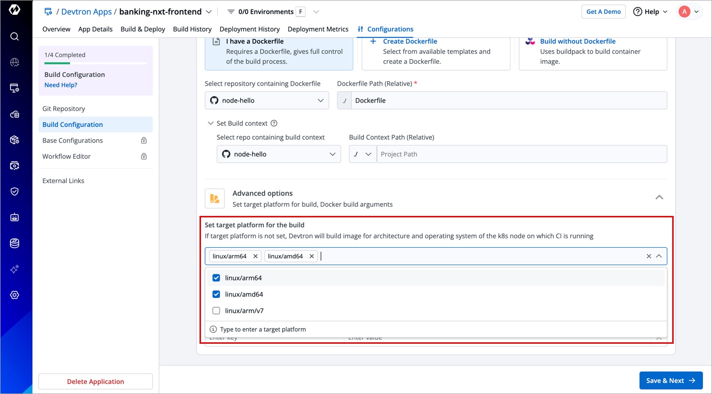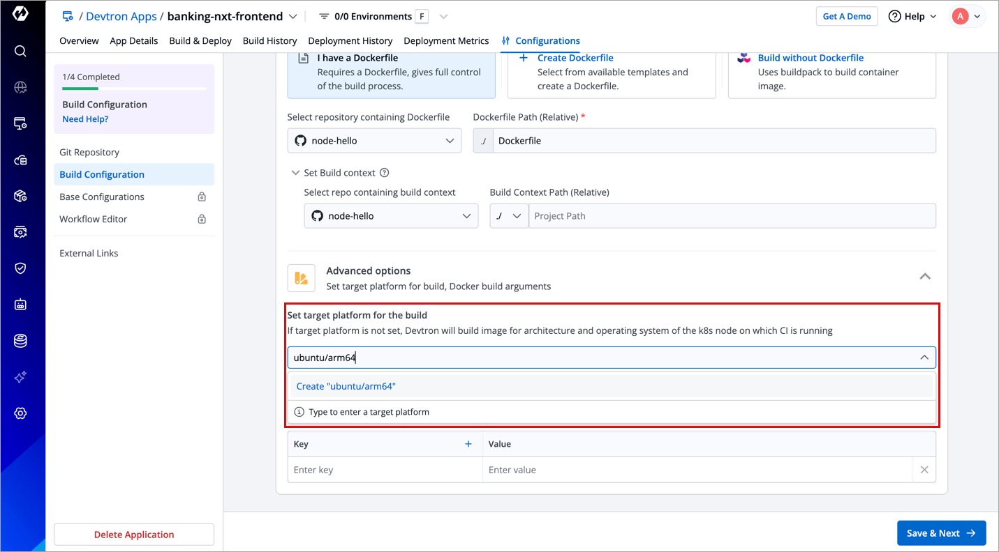 If target platform is not set, Devtron will build image for architecture and operating system of the k8s node on which CI is running.