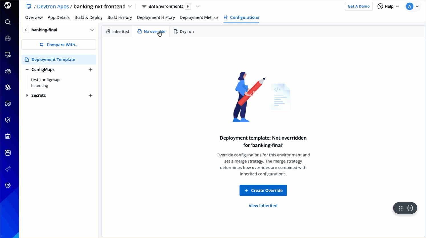 In your Devtron app, go to Configurations (tab) → Environment Overrides.