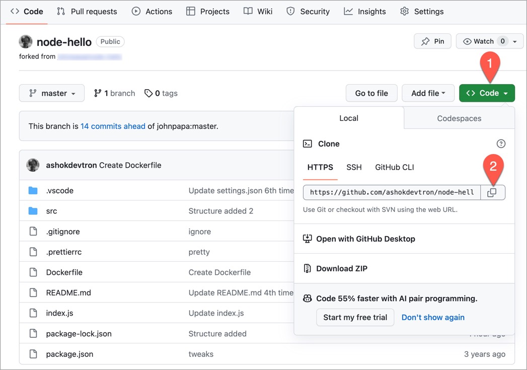 You can find this URL by clicking on the Code button available on your repository page as shown below: