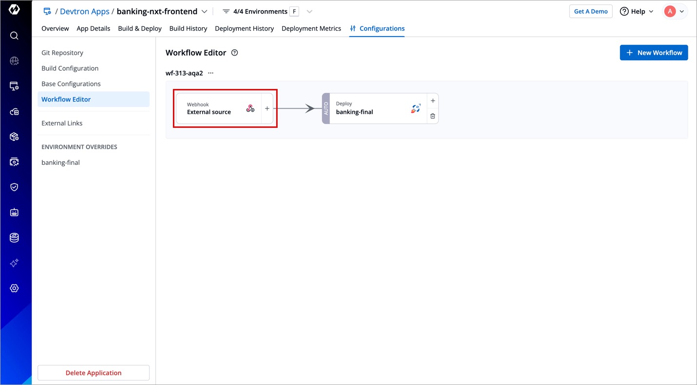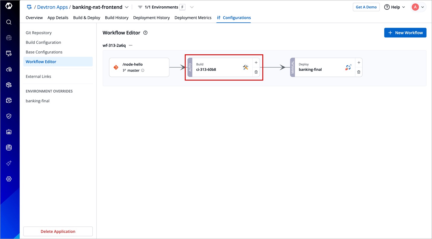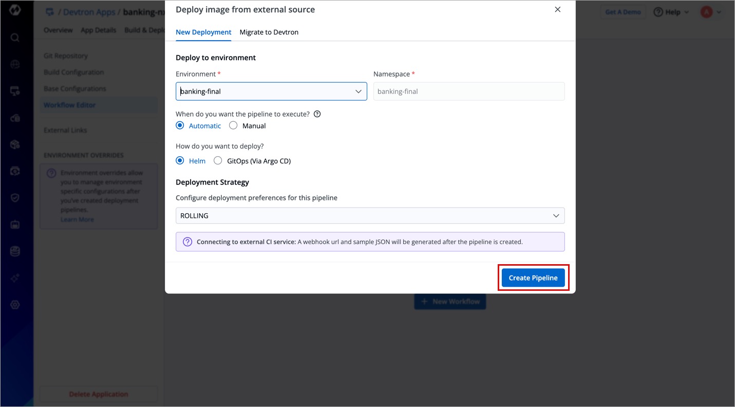 The Change Image Source feature in Devtron lets you update the container image source for an applicationβs workflow without modifying it.