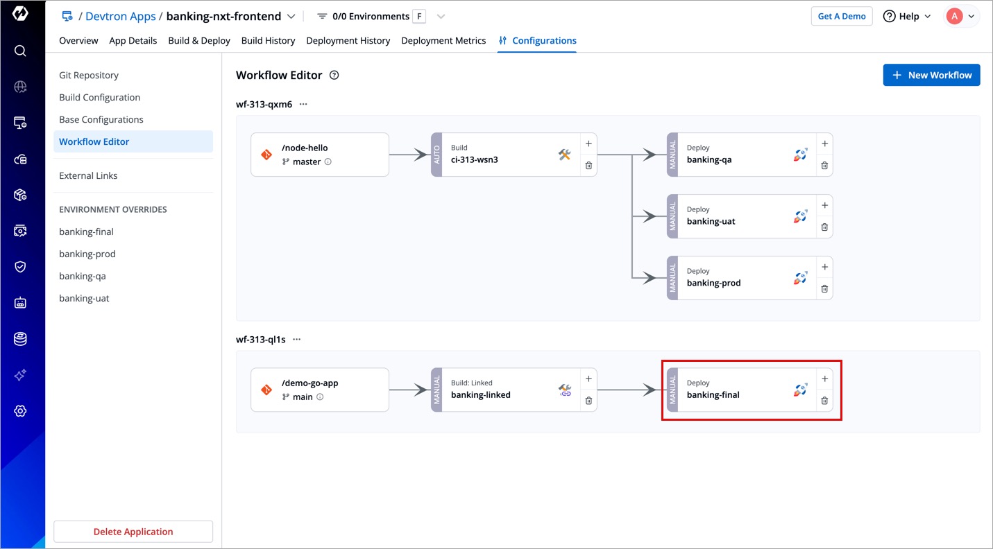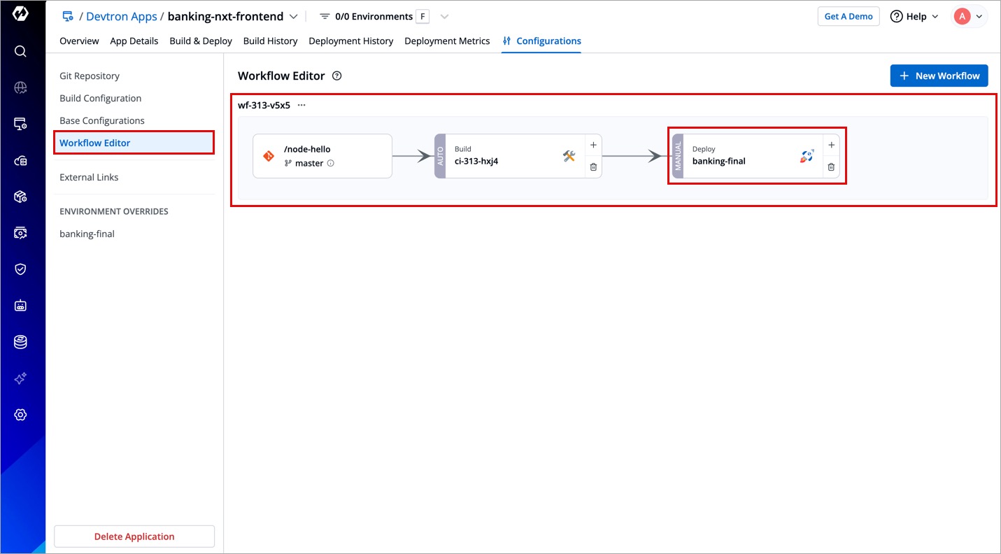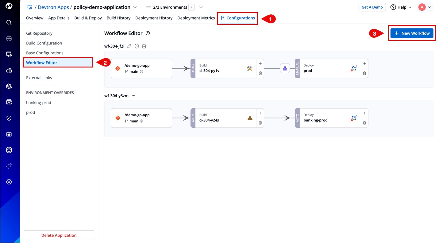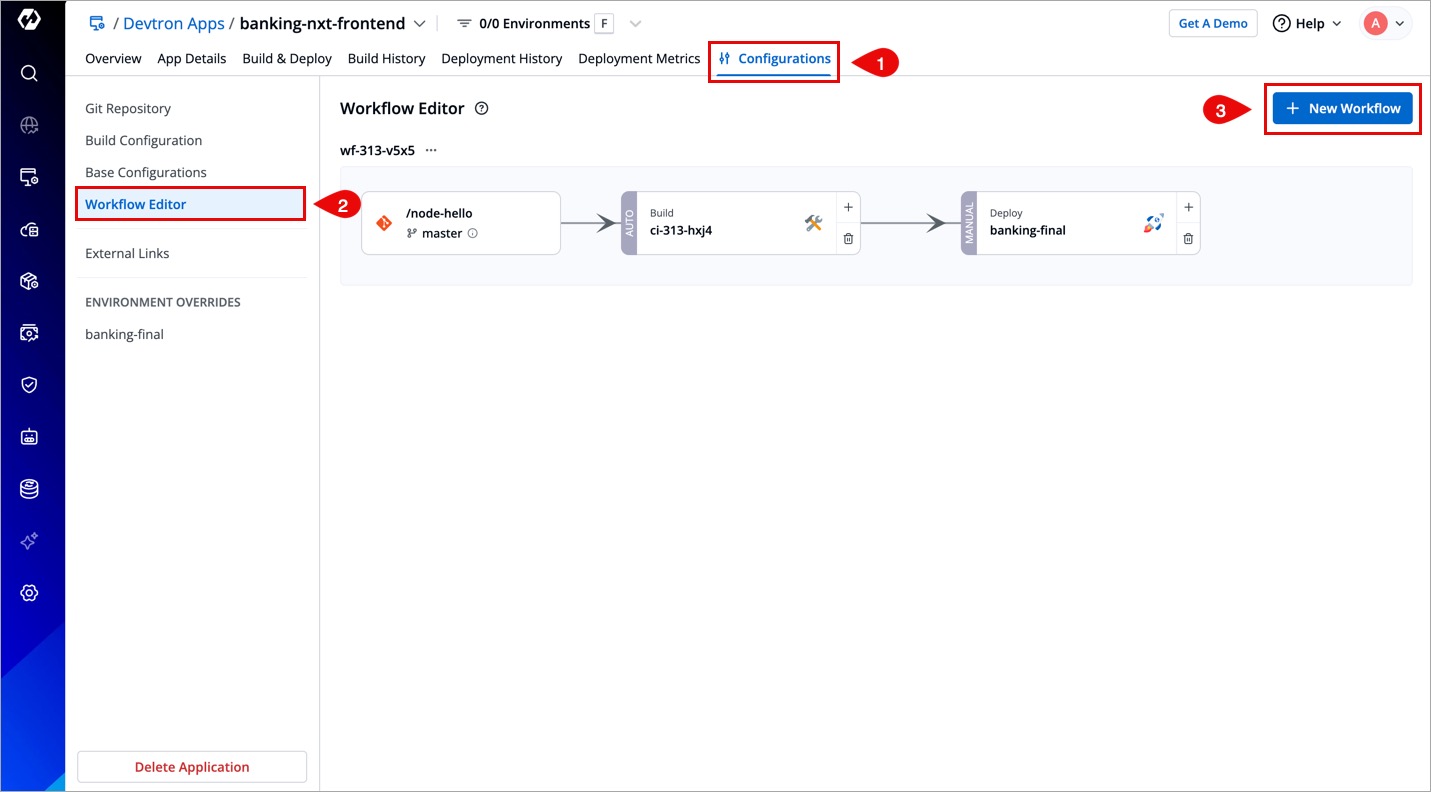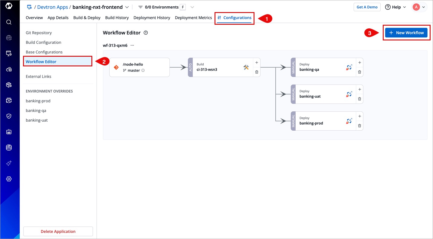 Navigate to Configurations (tab) β Workflow Editor of your application.