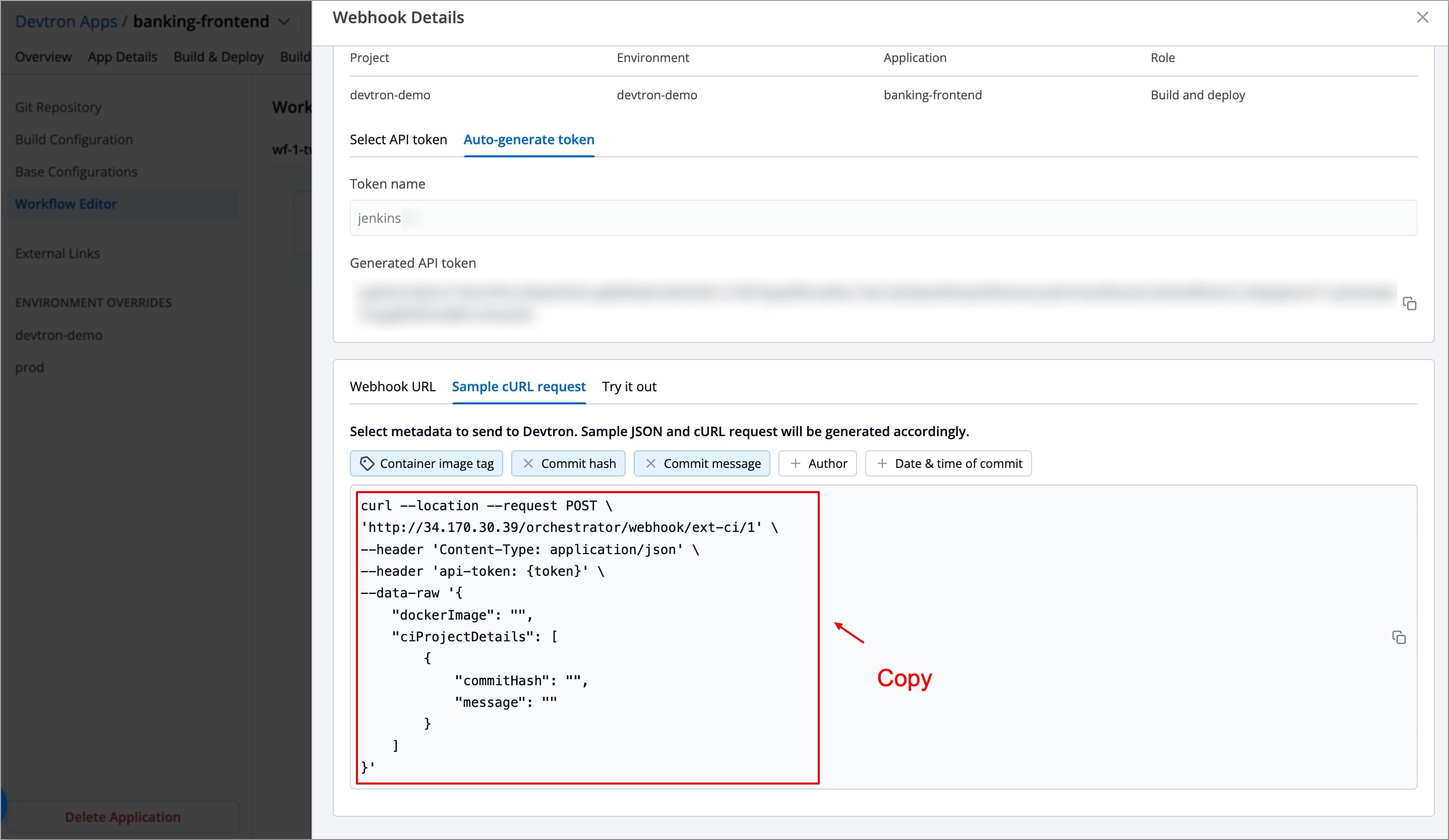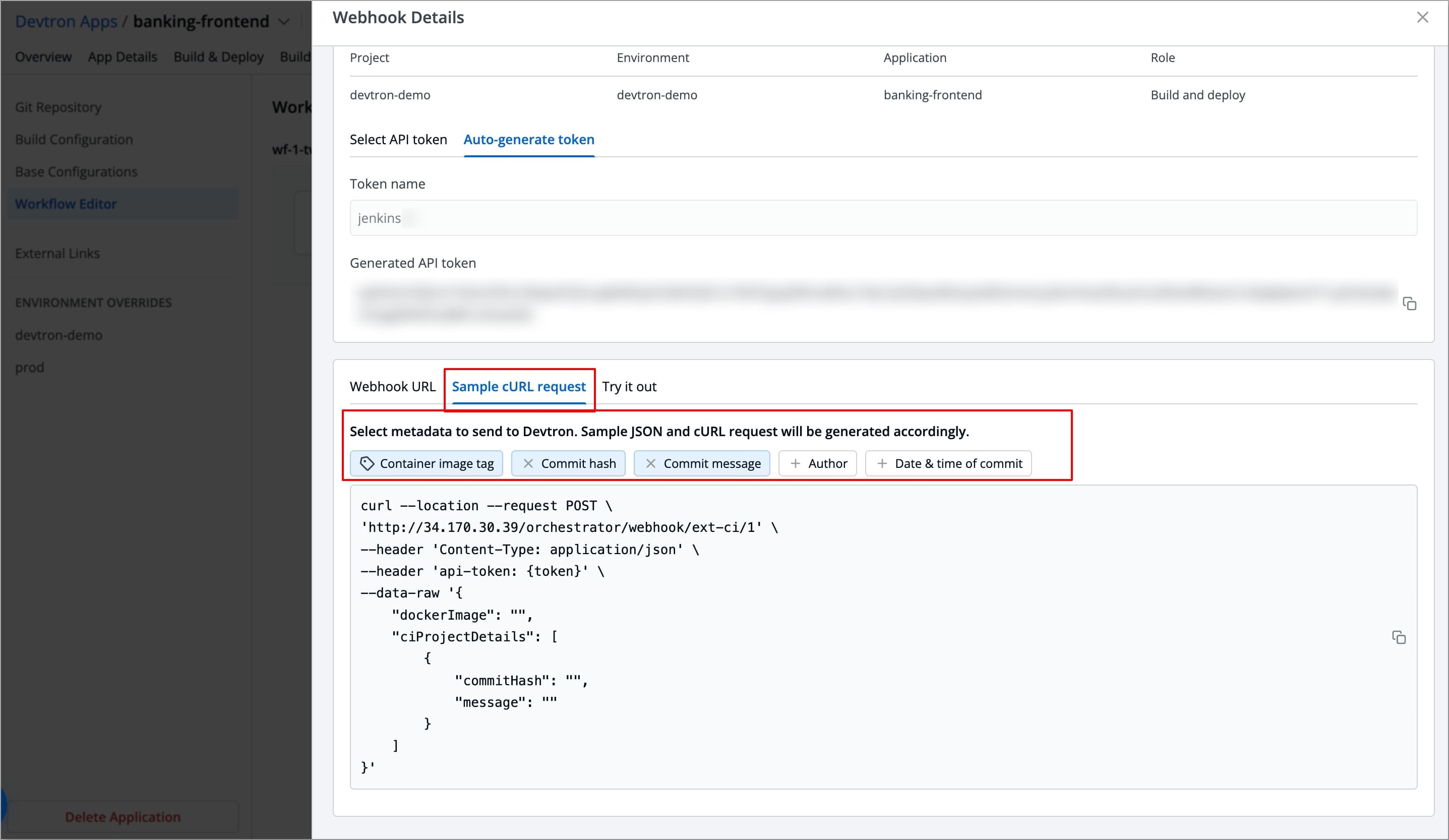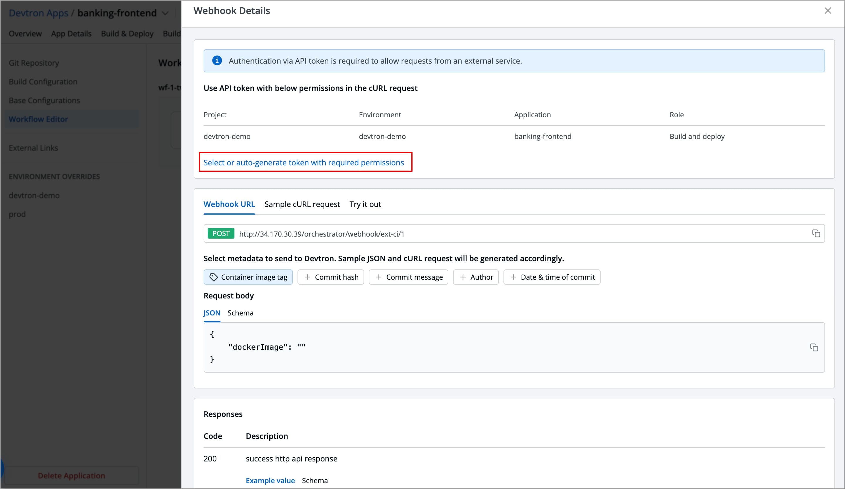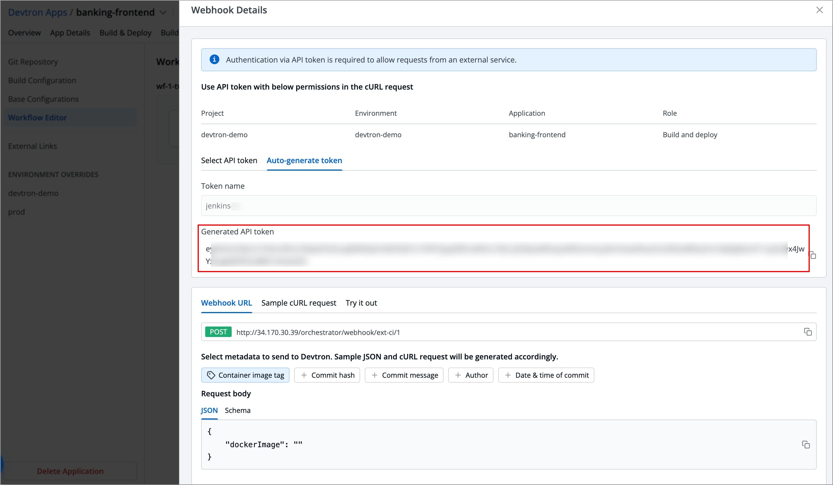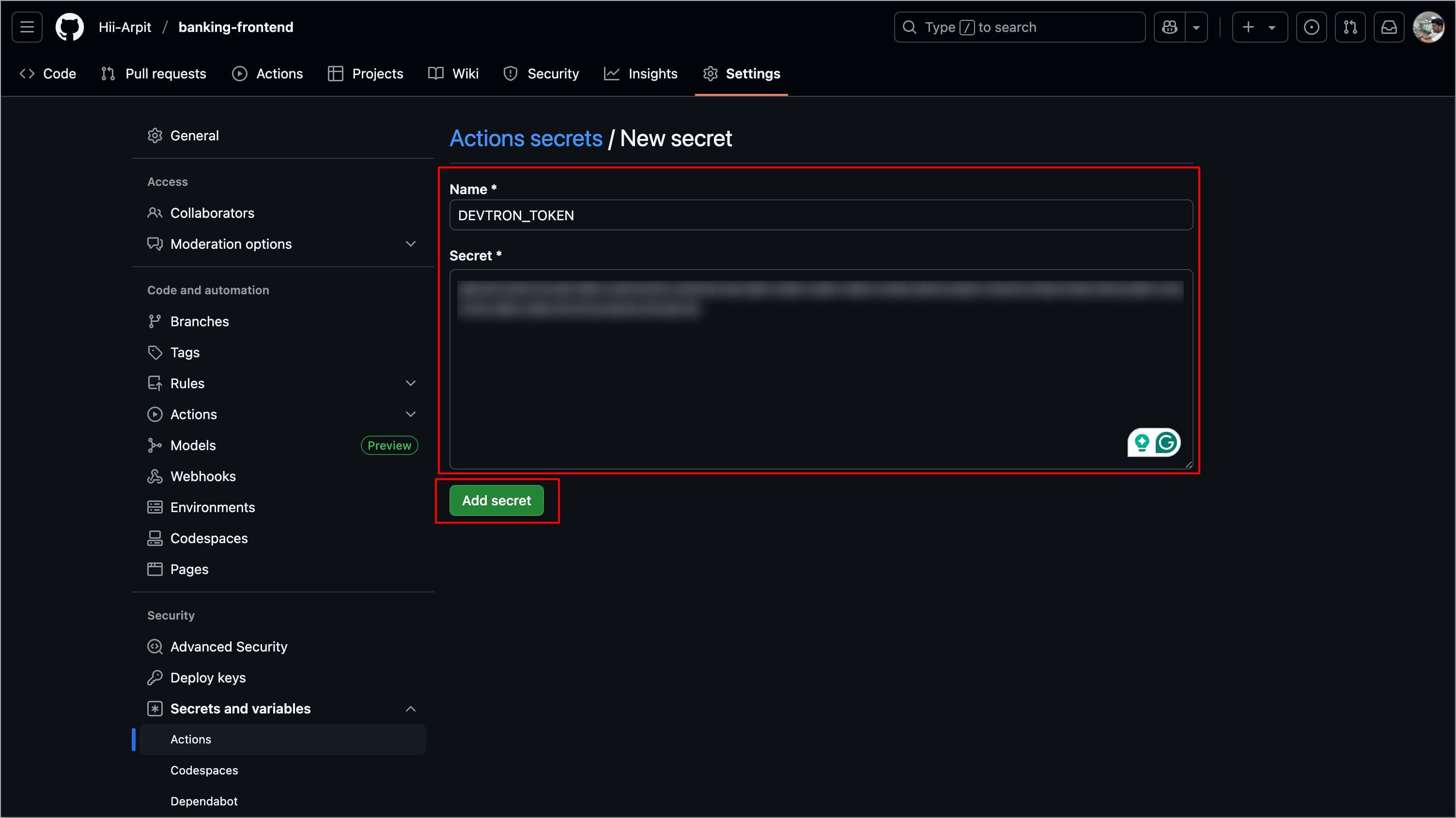 In the Secret token field, enter the secret from the Devtron dashboard when you select the source type as "Pull Request" or "Tag Creation".