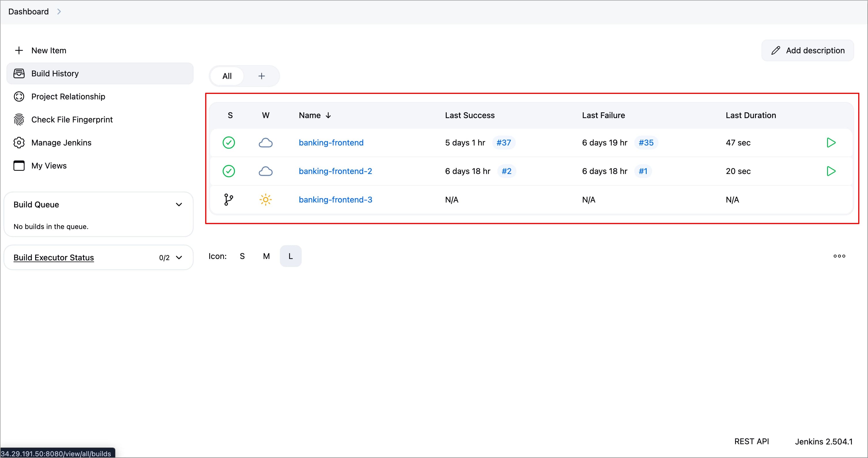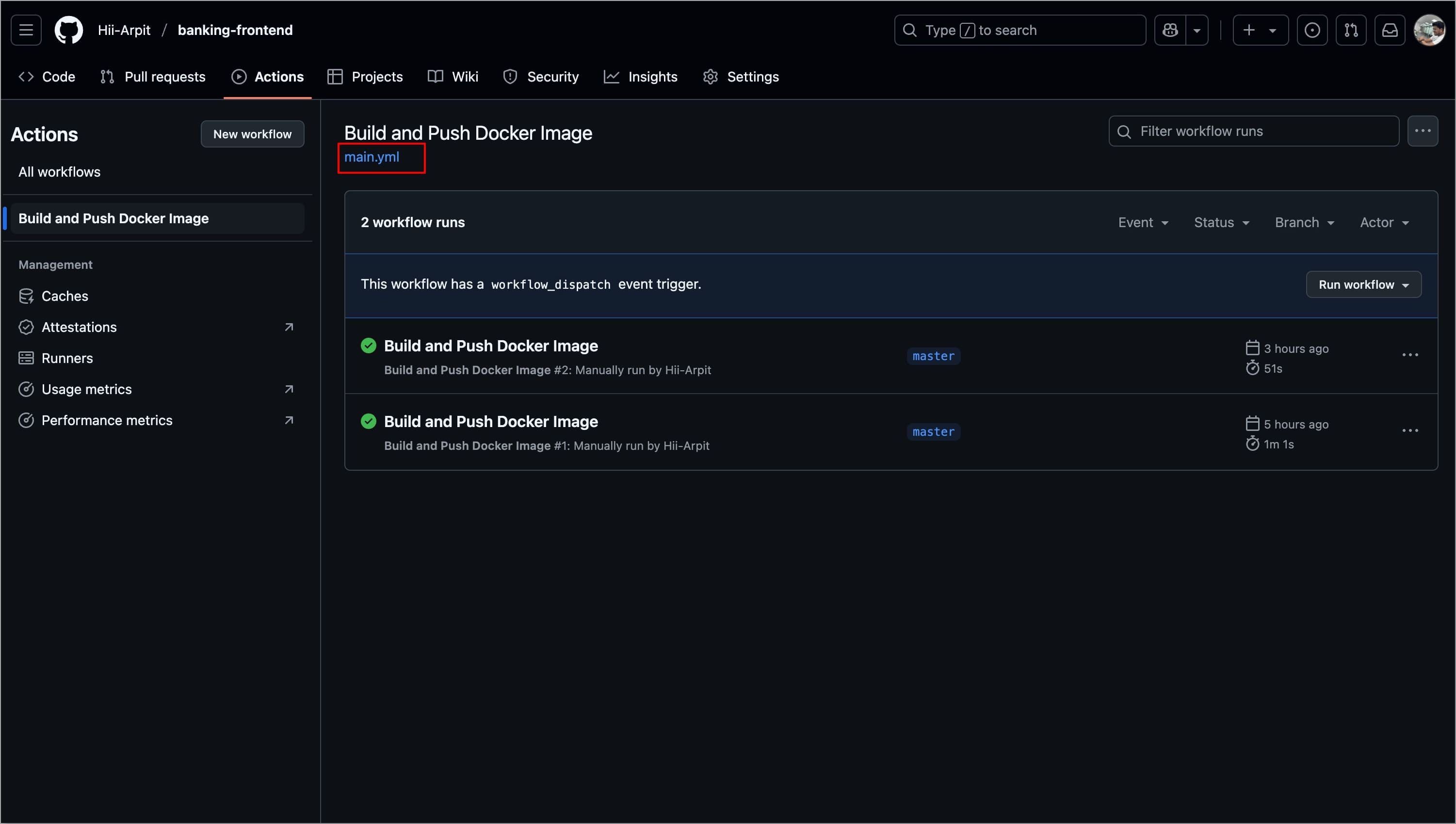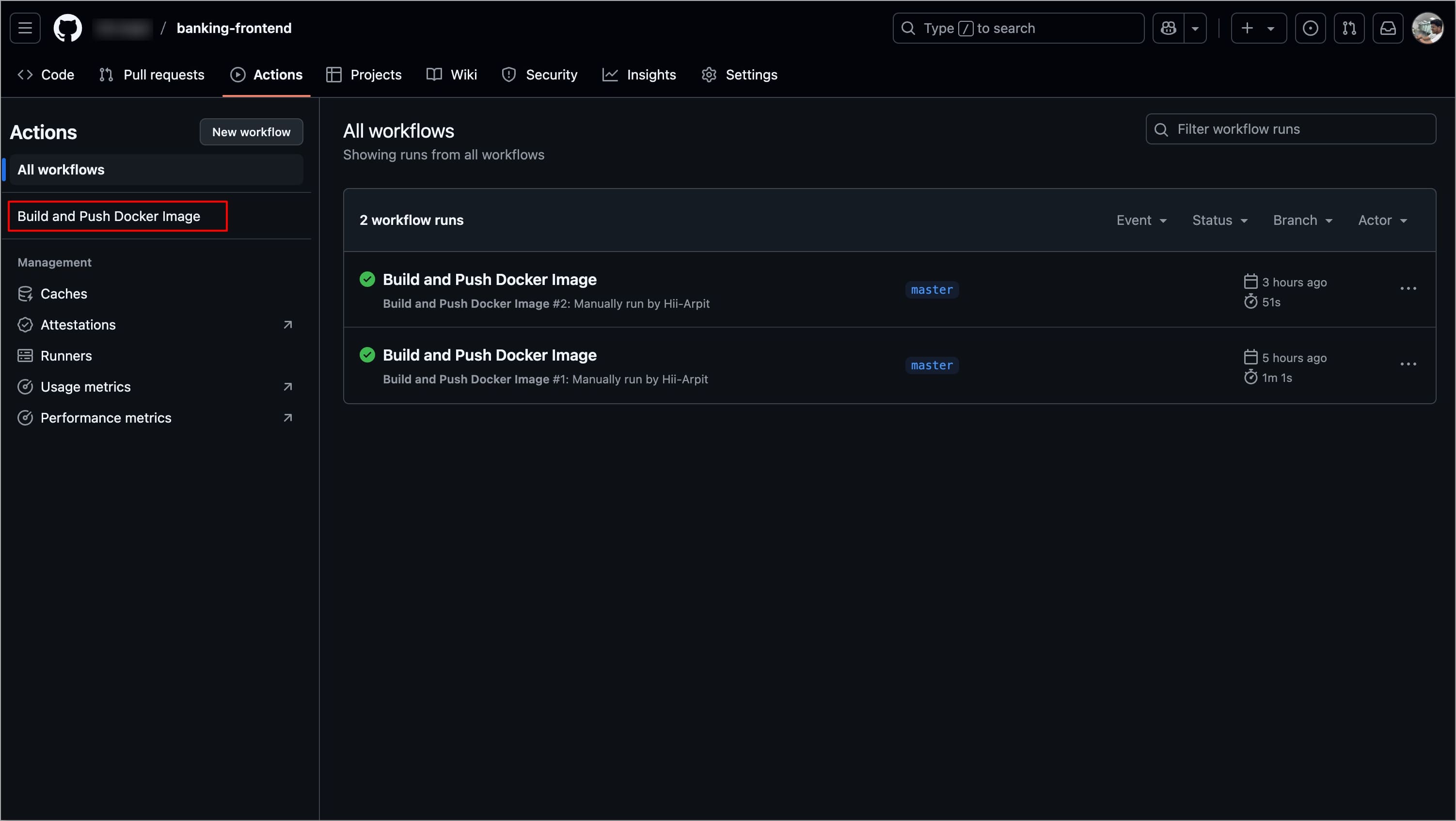 Click Start Build. This will trigger the build process and push the generated container image to the configured container registry for storage, versioning, and later use in the CD pipeline.
