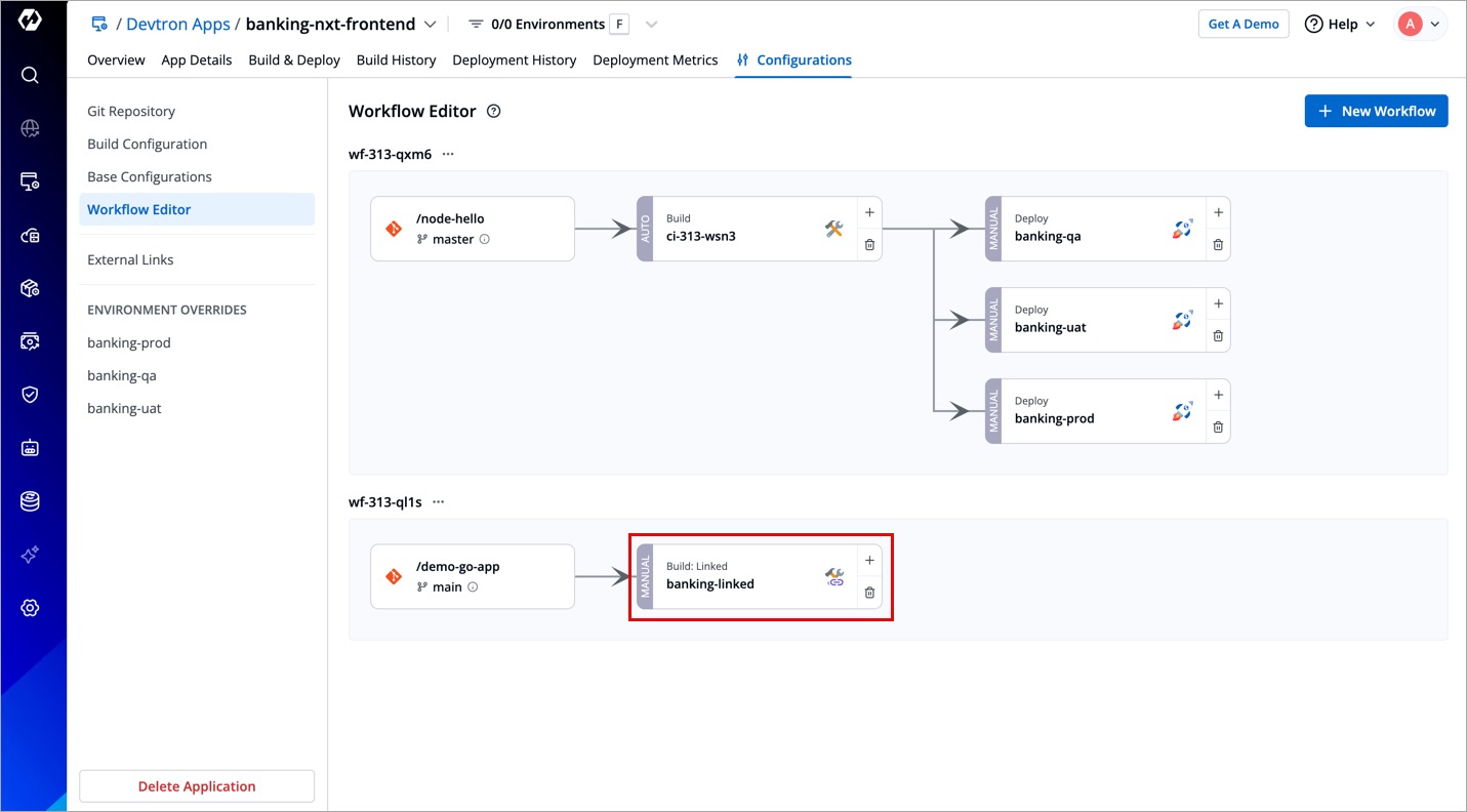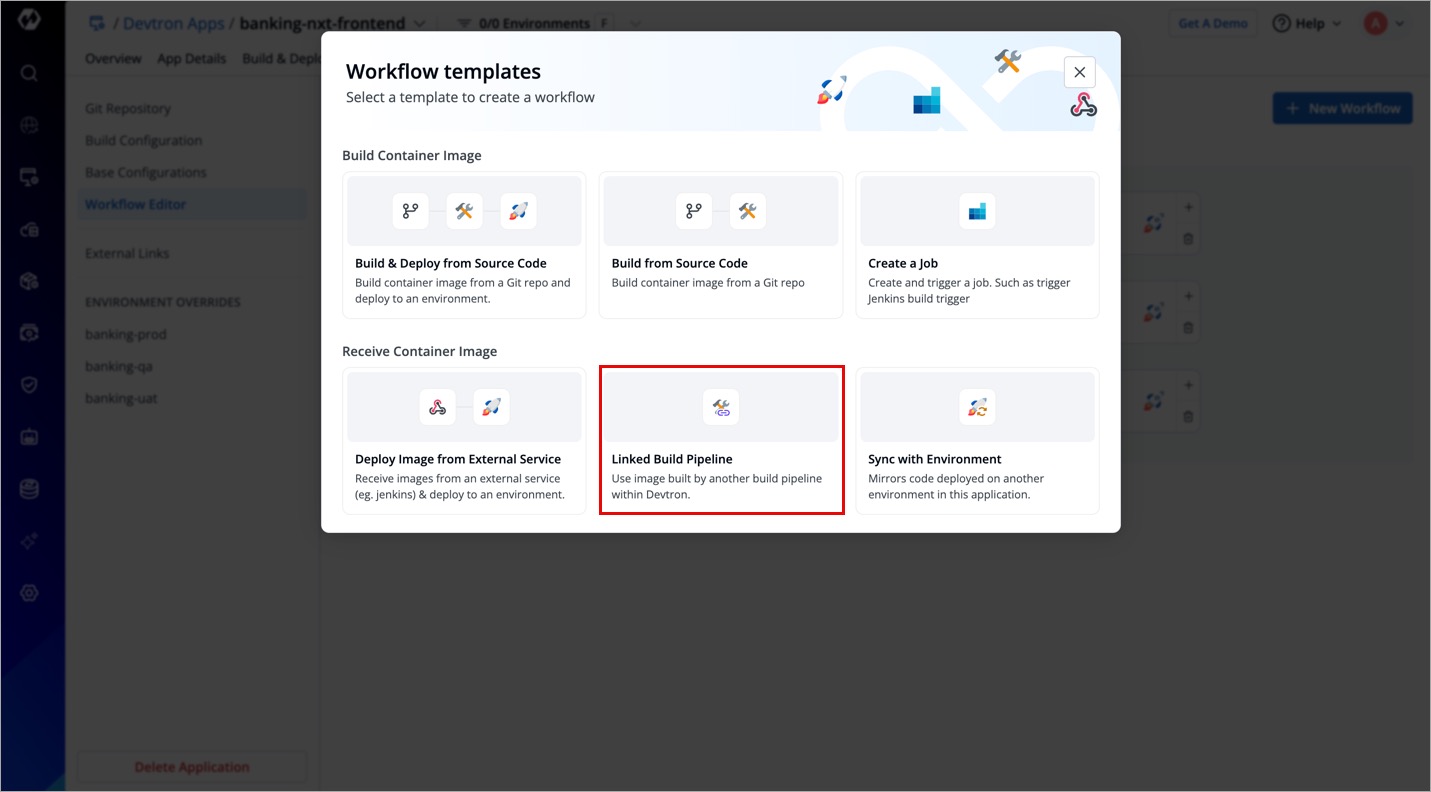 Linked Build Pipeline allows you to reuse build images from another pipeline within Devtron, instead of building images from source code each time.
