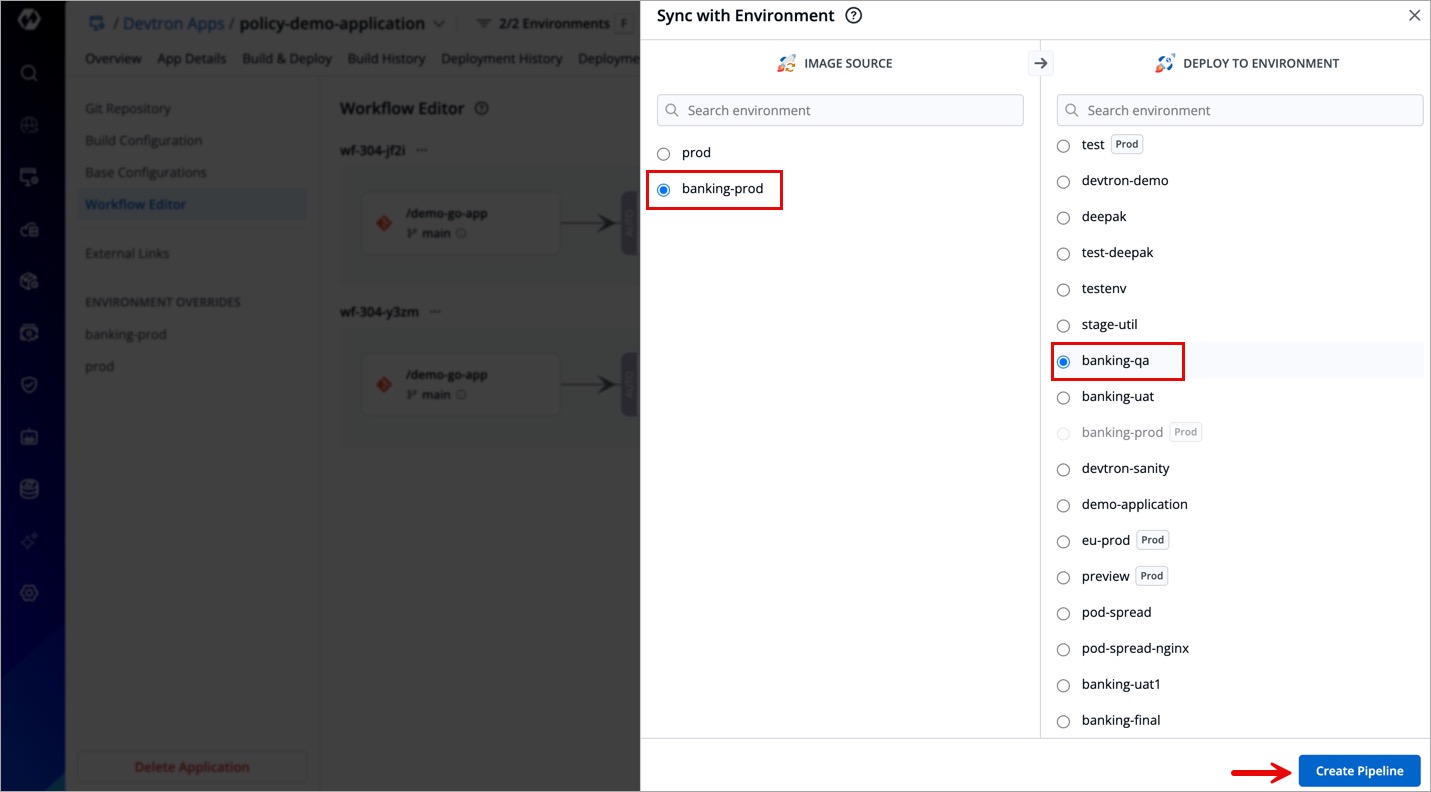 Then, for other applications, you can simply link that source pipeline to reuse its build images directly in your workflow and proceed to create a CD pipeline using those images.