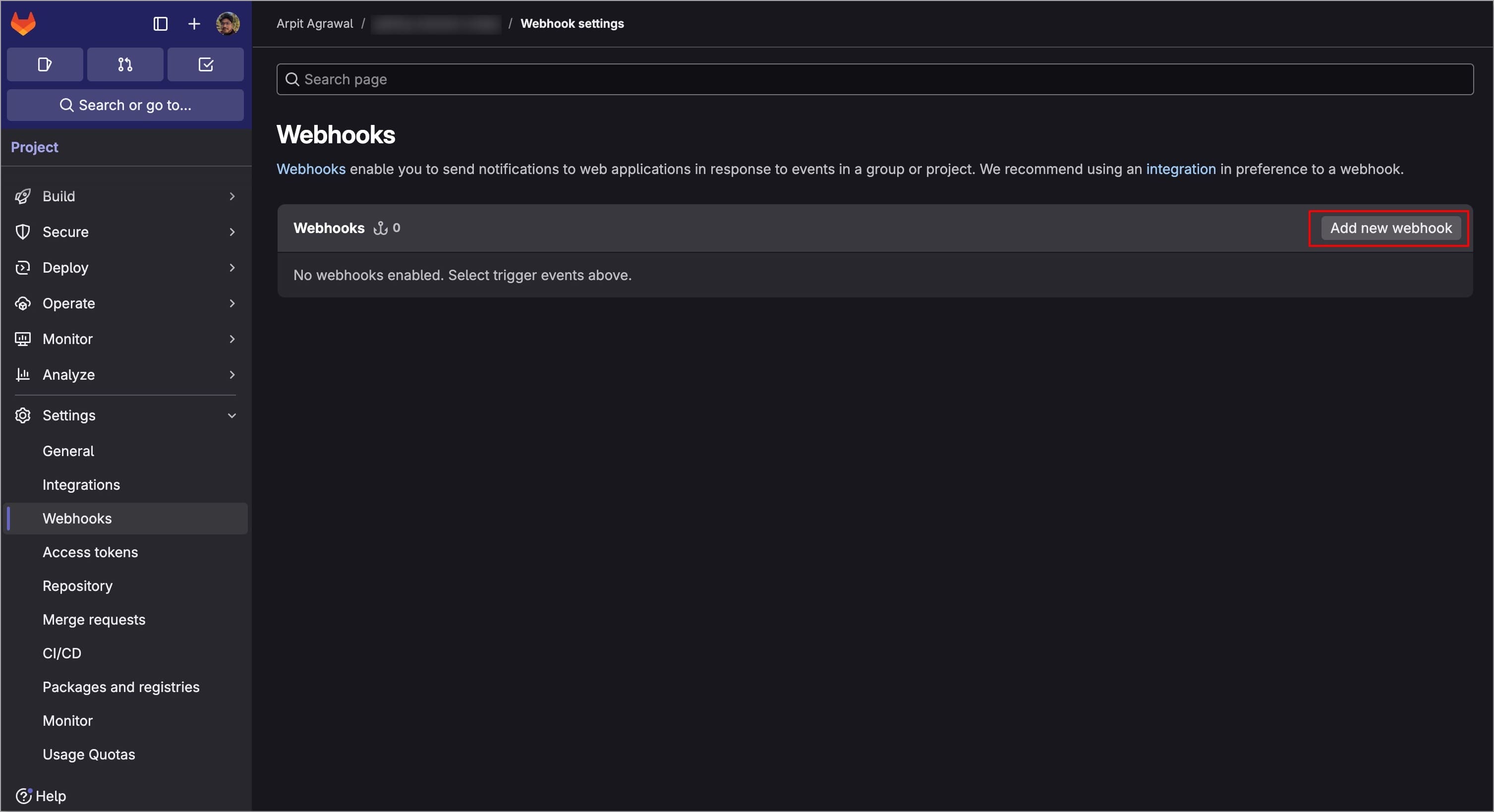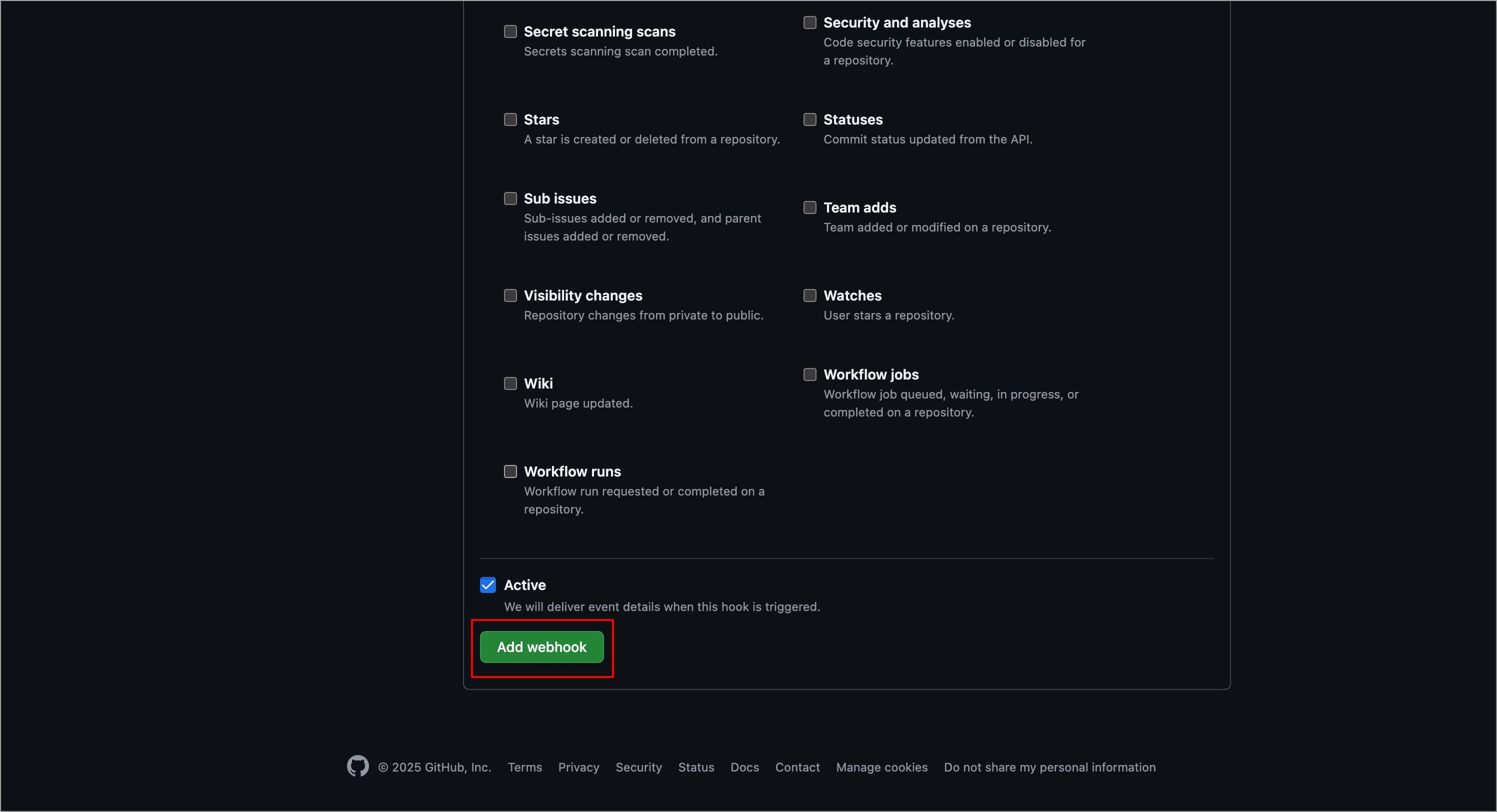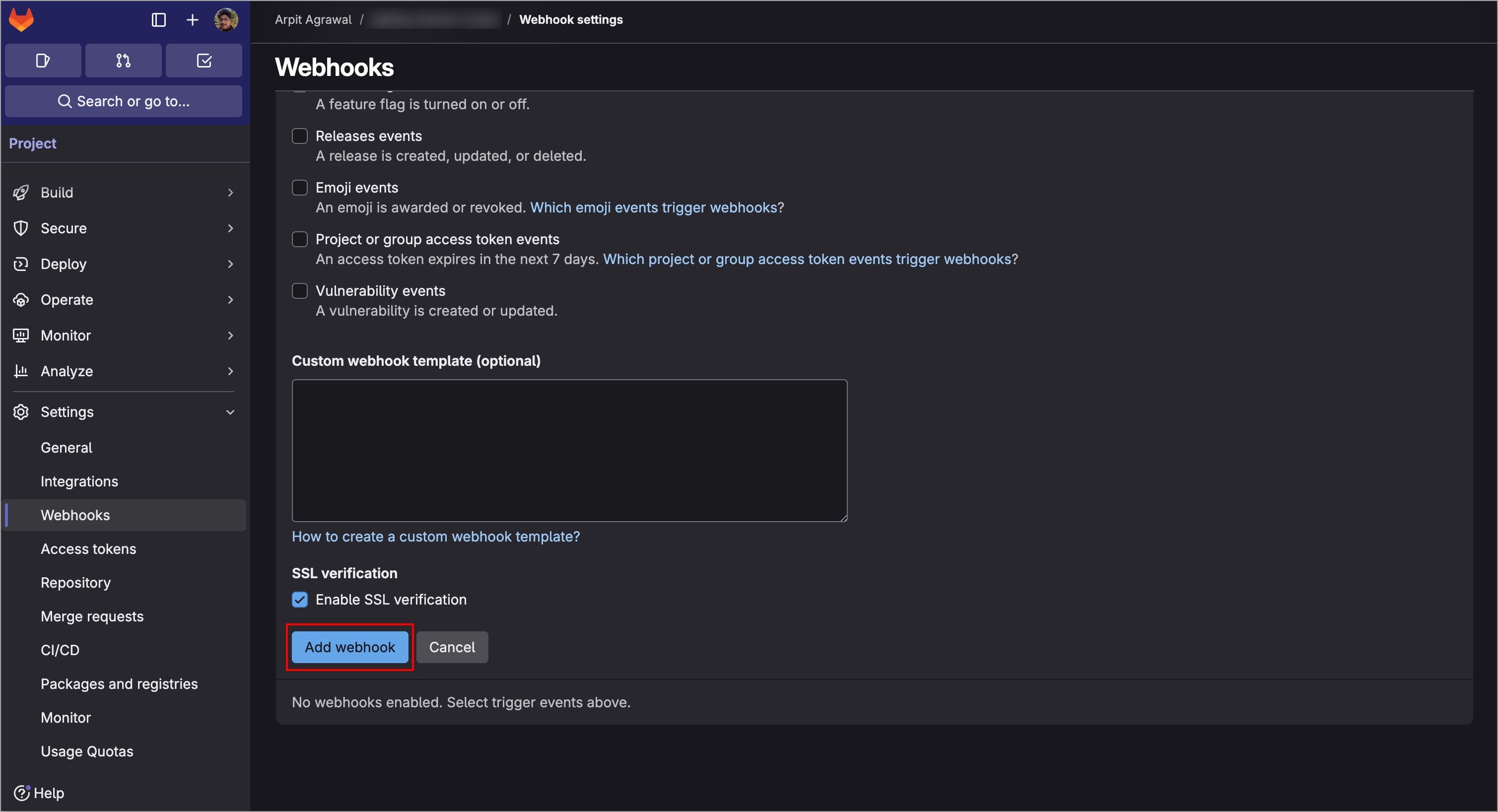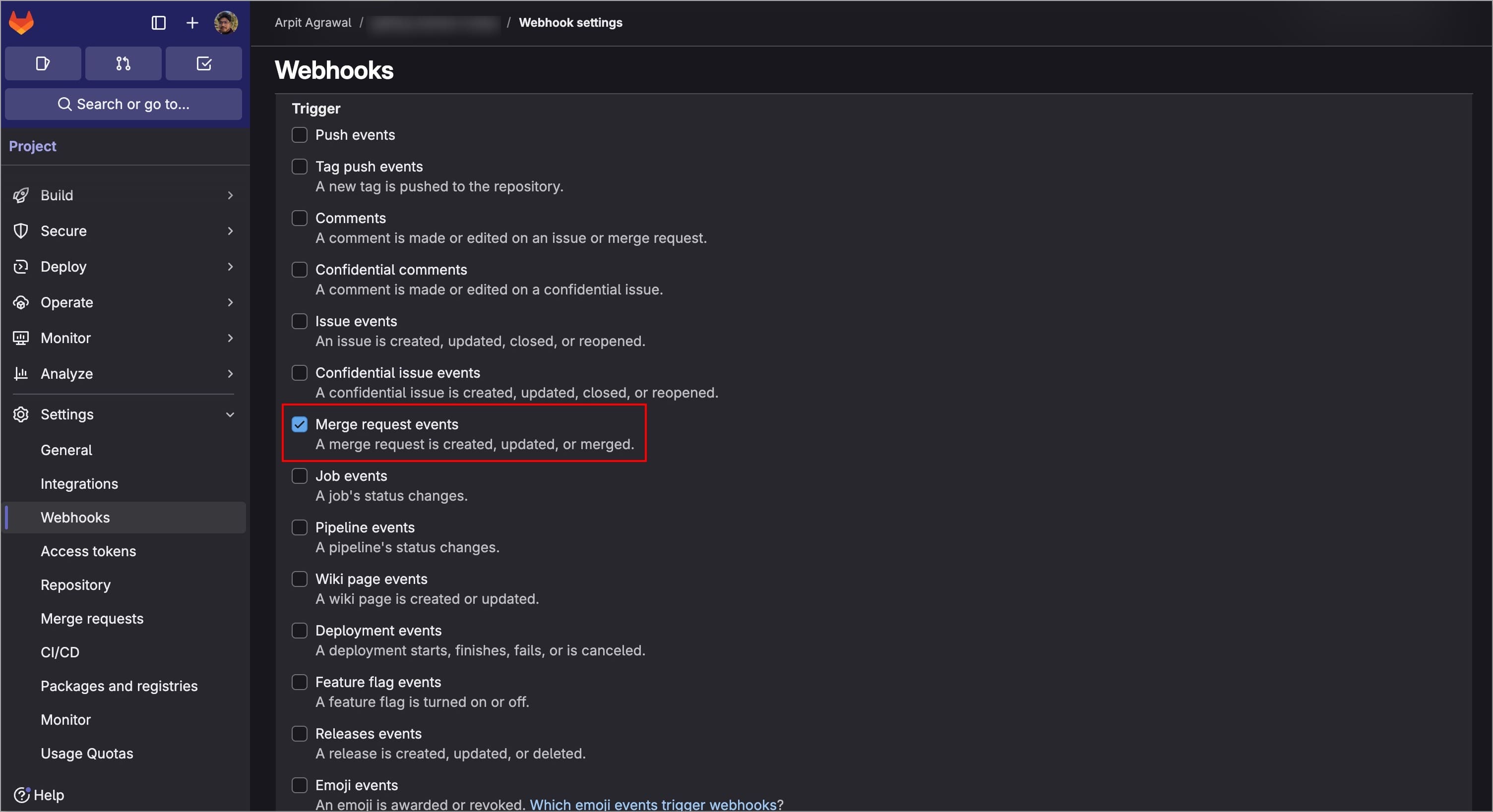 Select the event triggers for which you want to trigger the webhook under the Triggers section.
