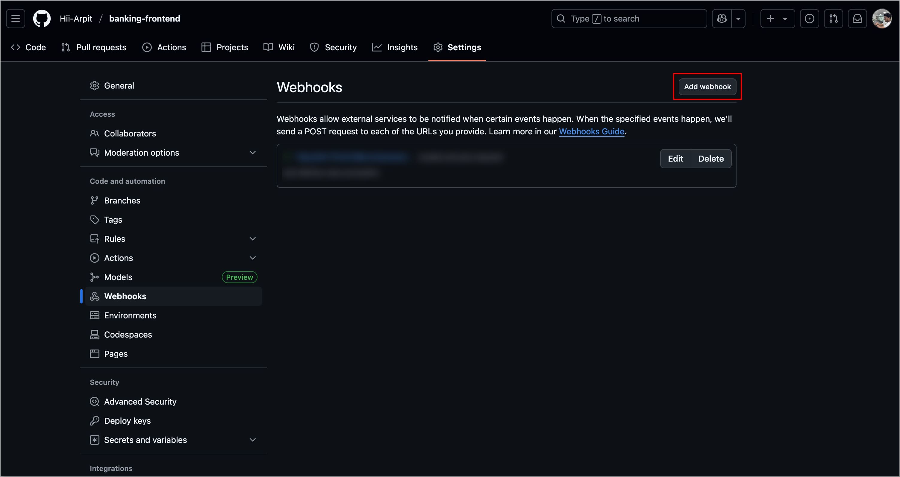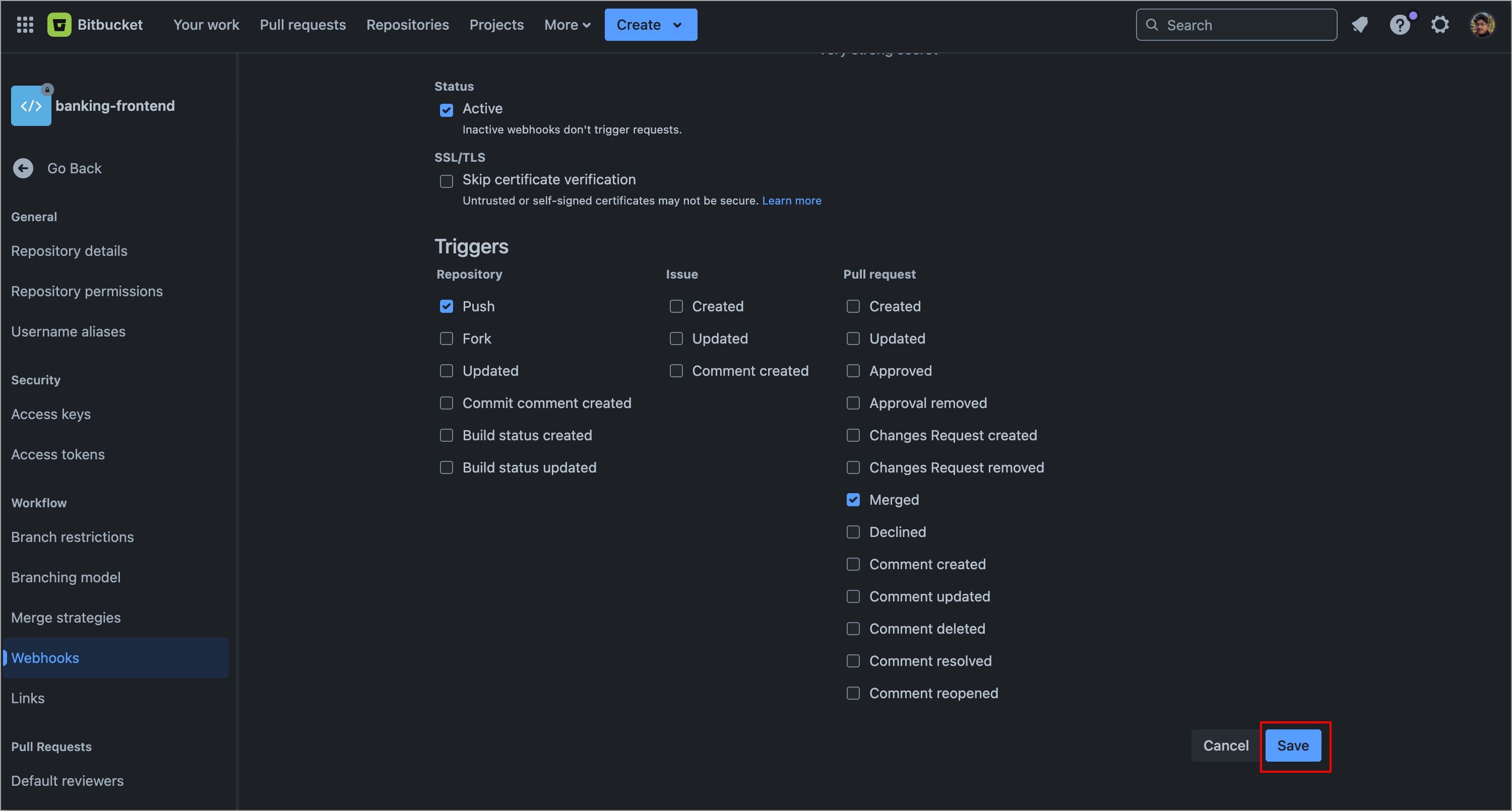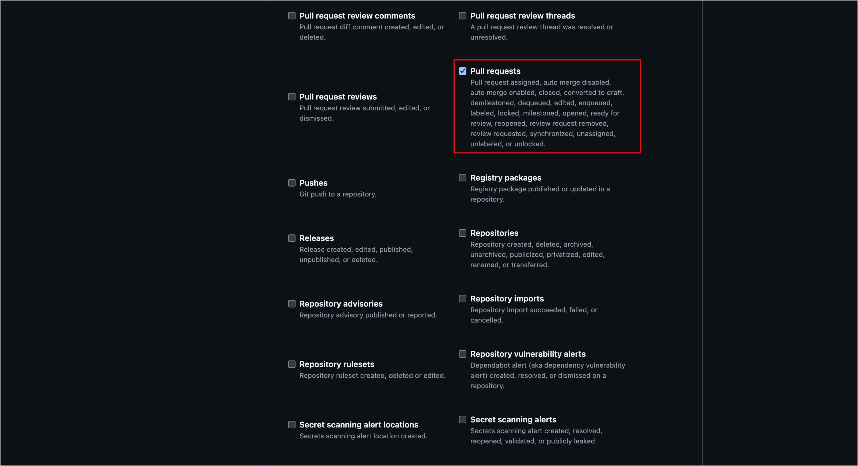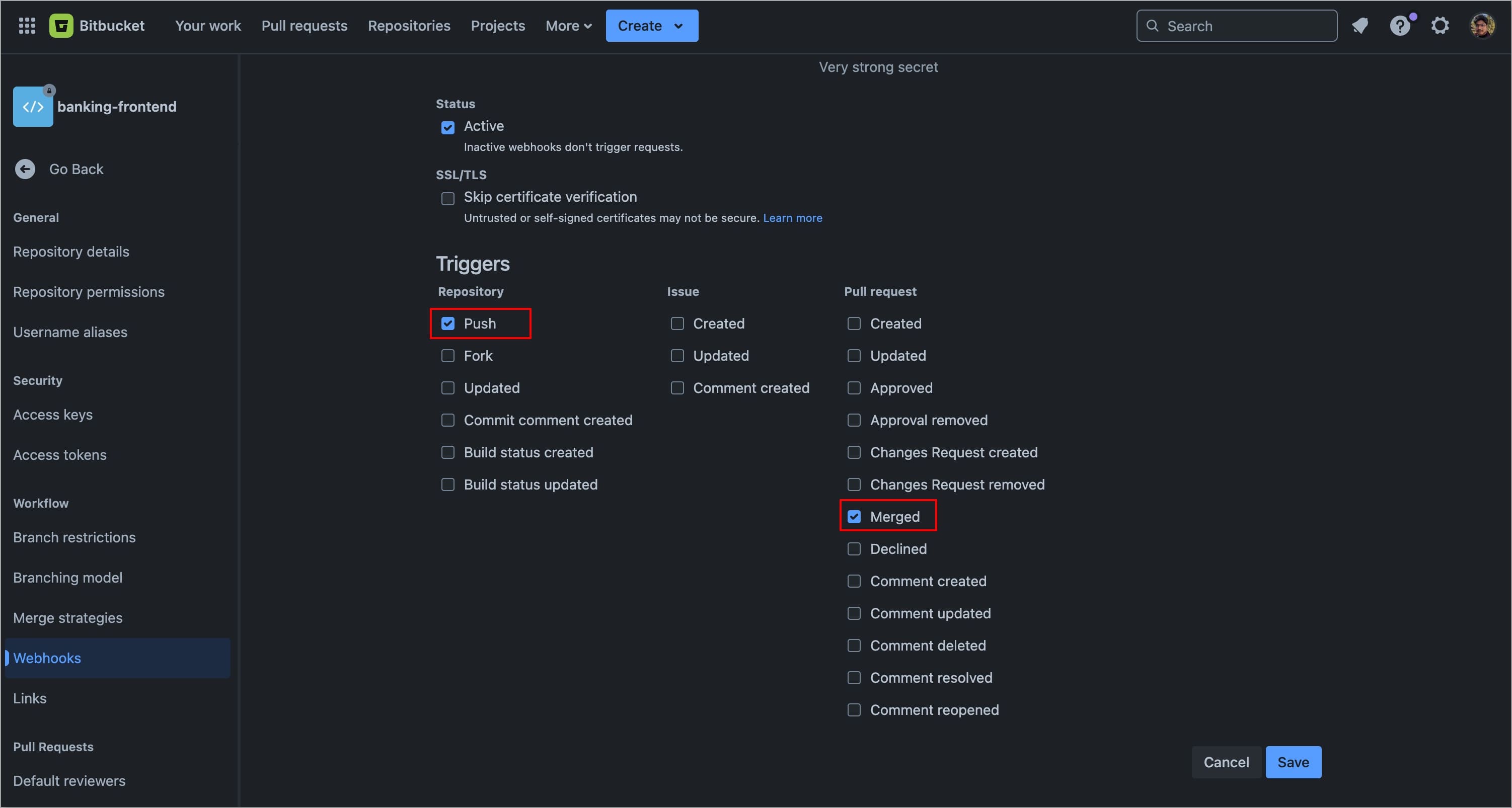 Select the event triggers for which you want to trigger the webhook under the Triggers section.
