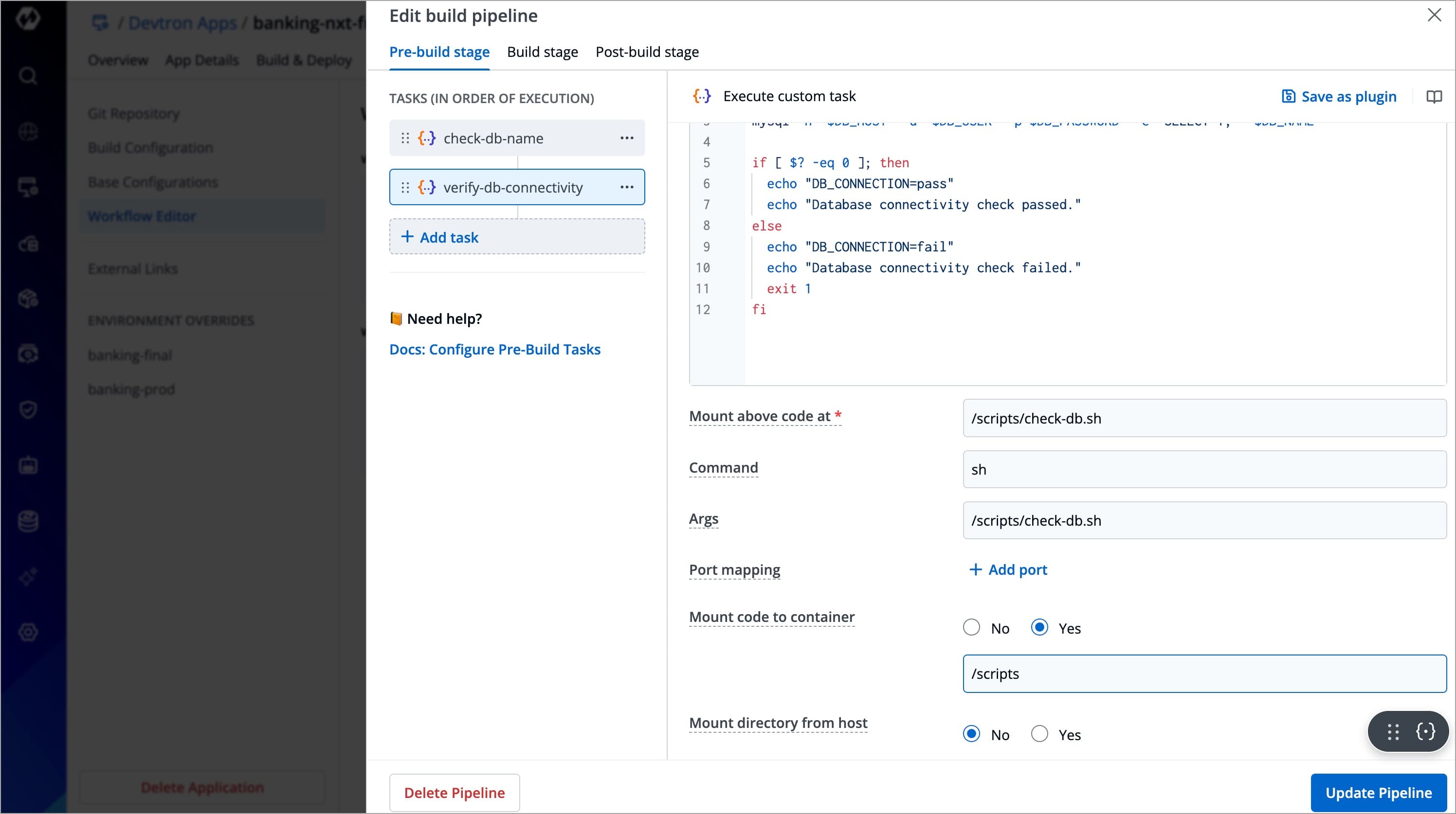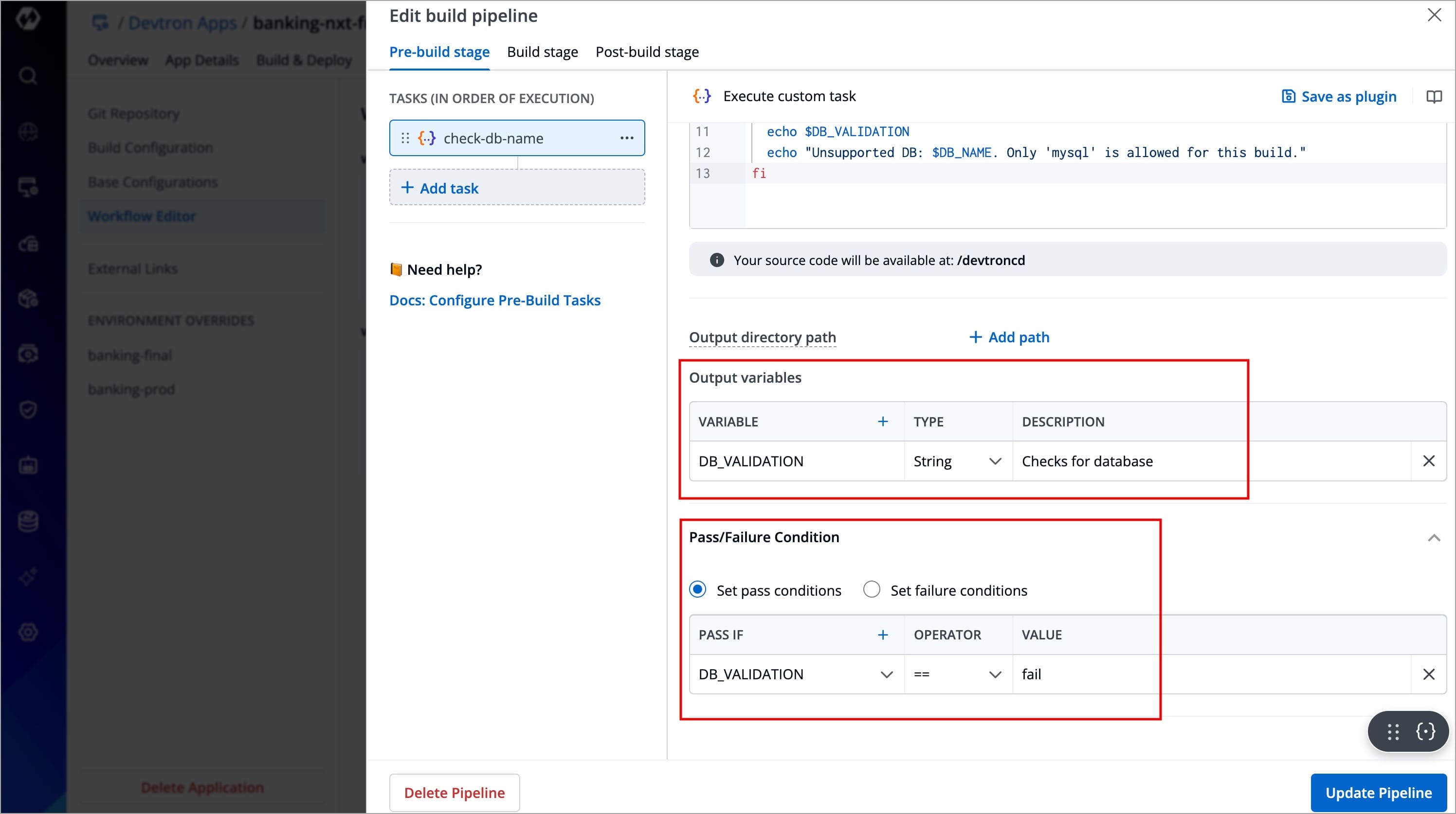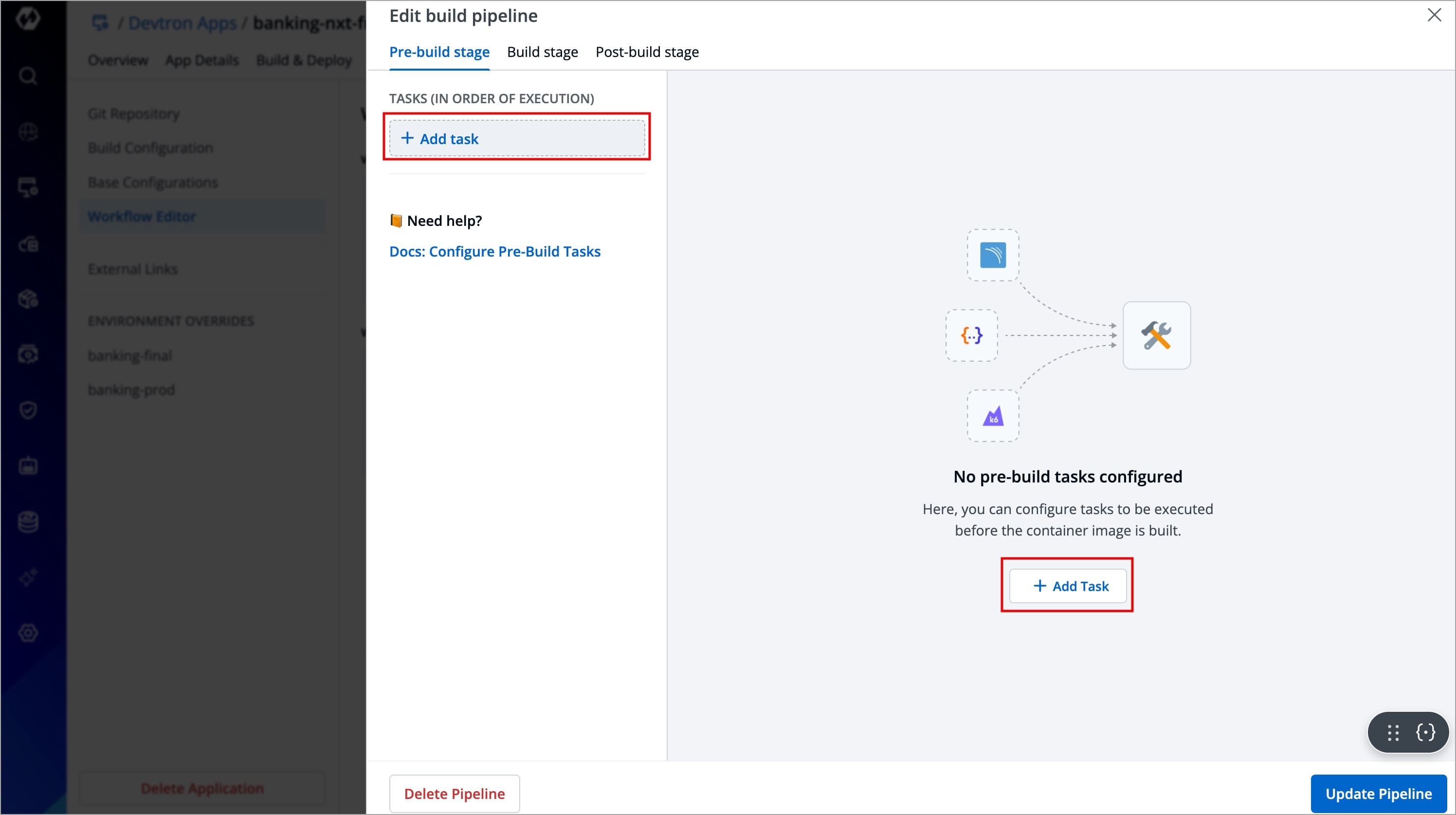 Click Update Pipeline. The pre/post task will be executed when you trigger the next build or deployment.