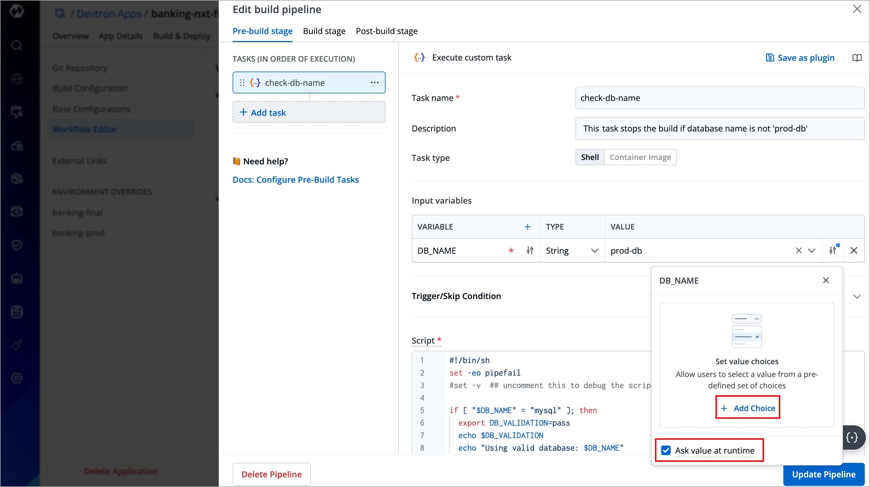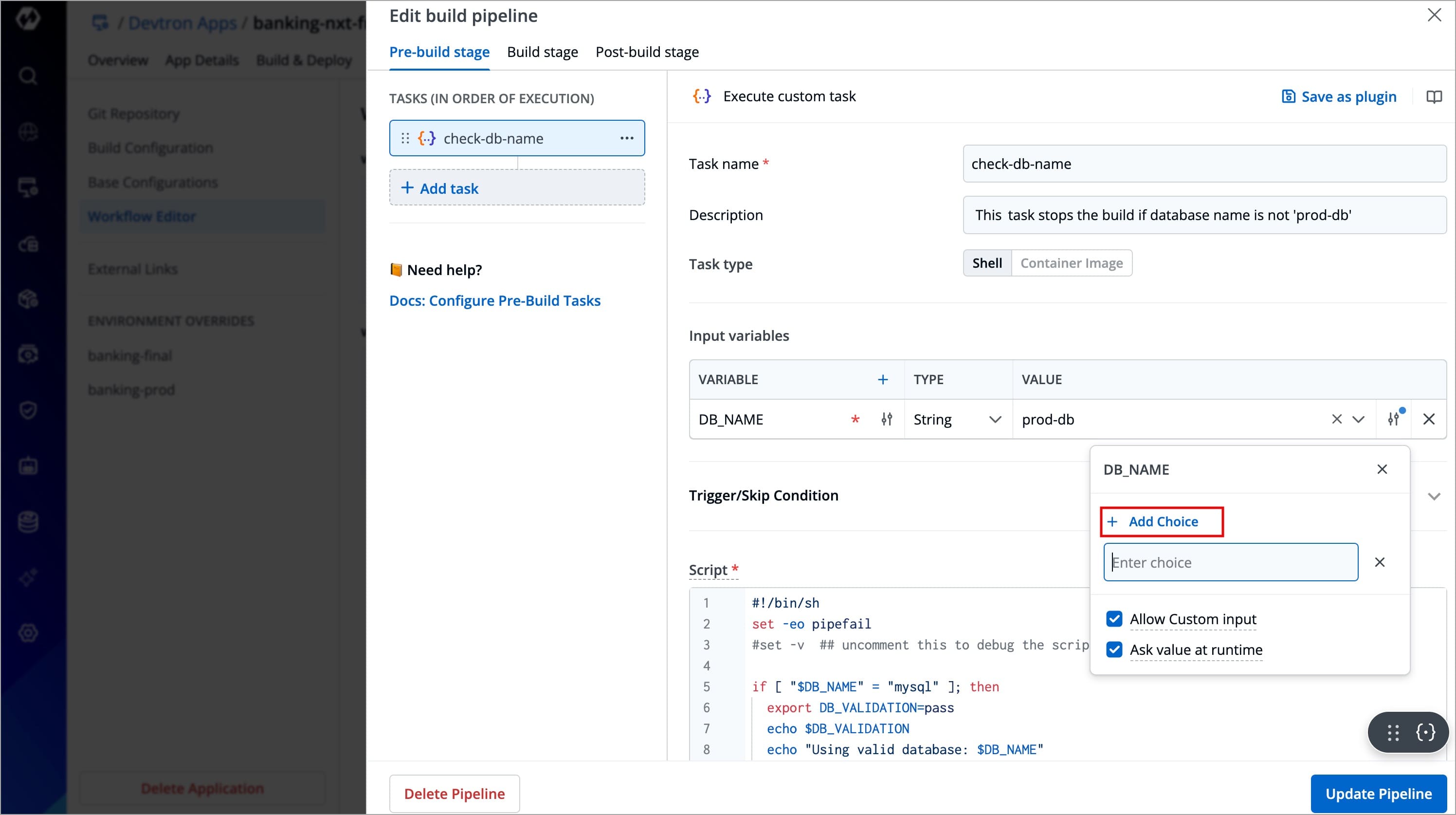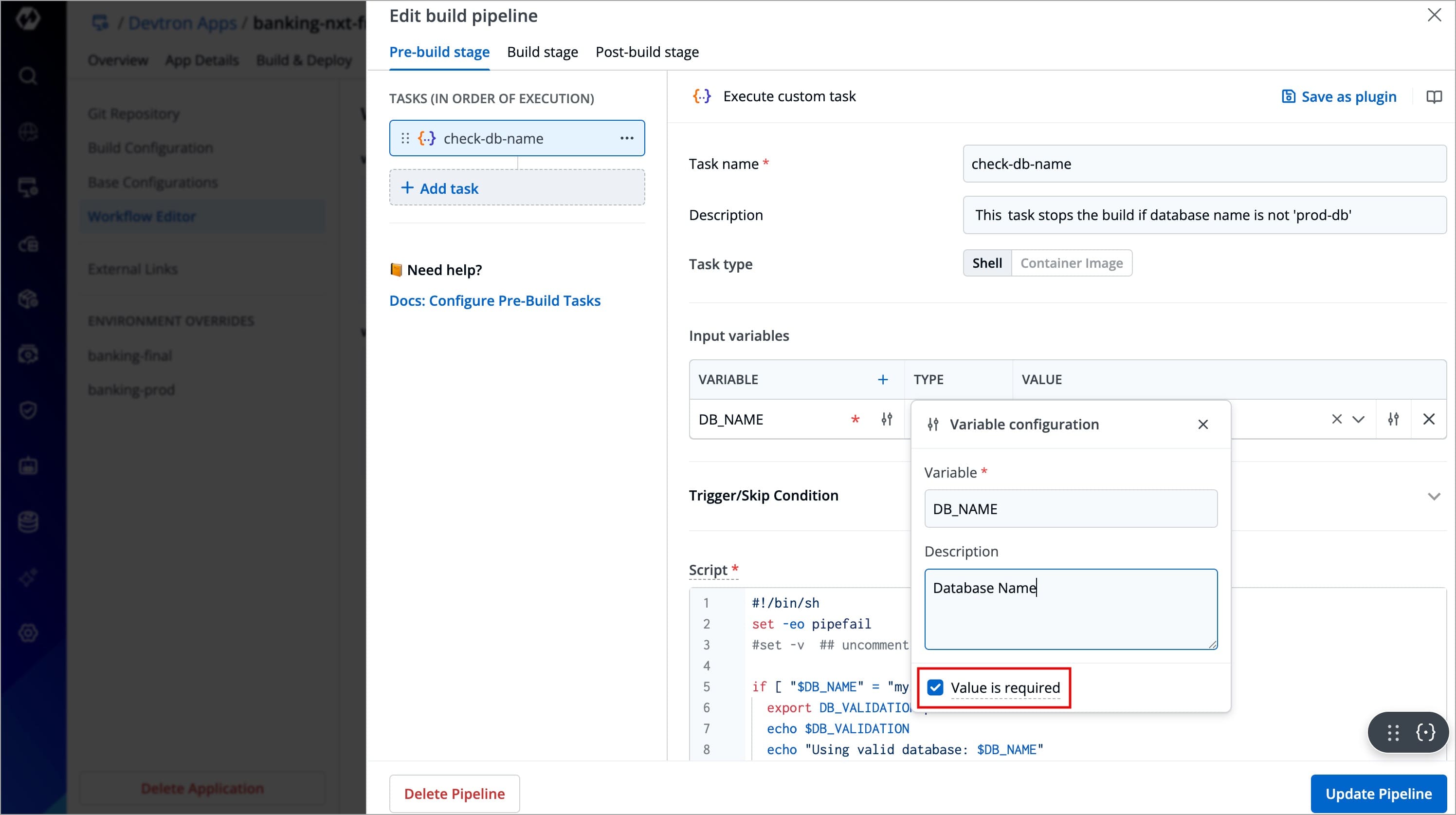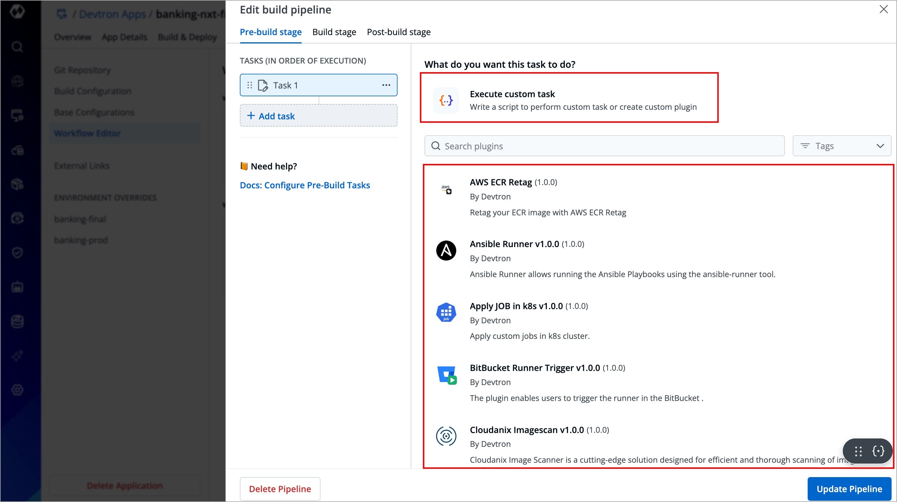 Click Update Pipeline. The pre/post task will be executed when you trigger the next build or deployment.