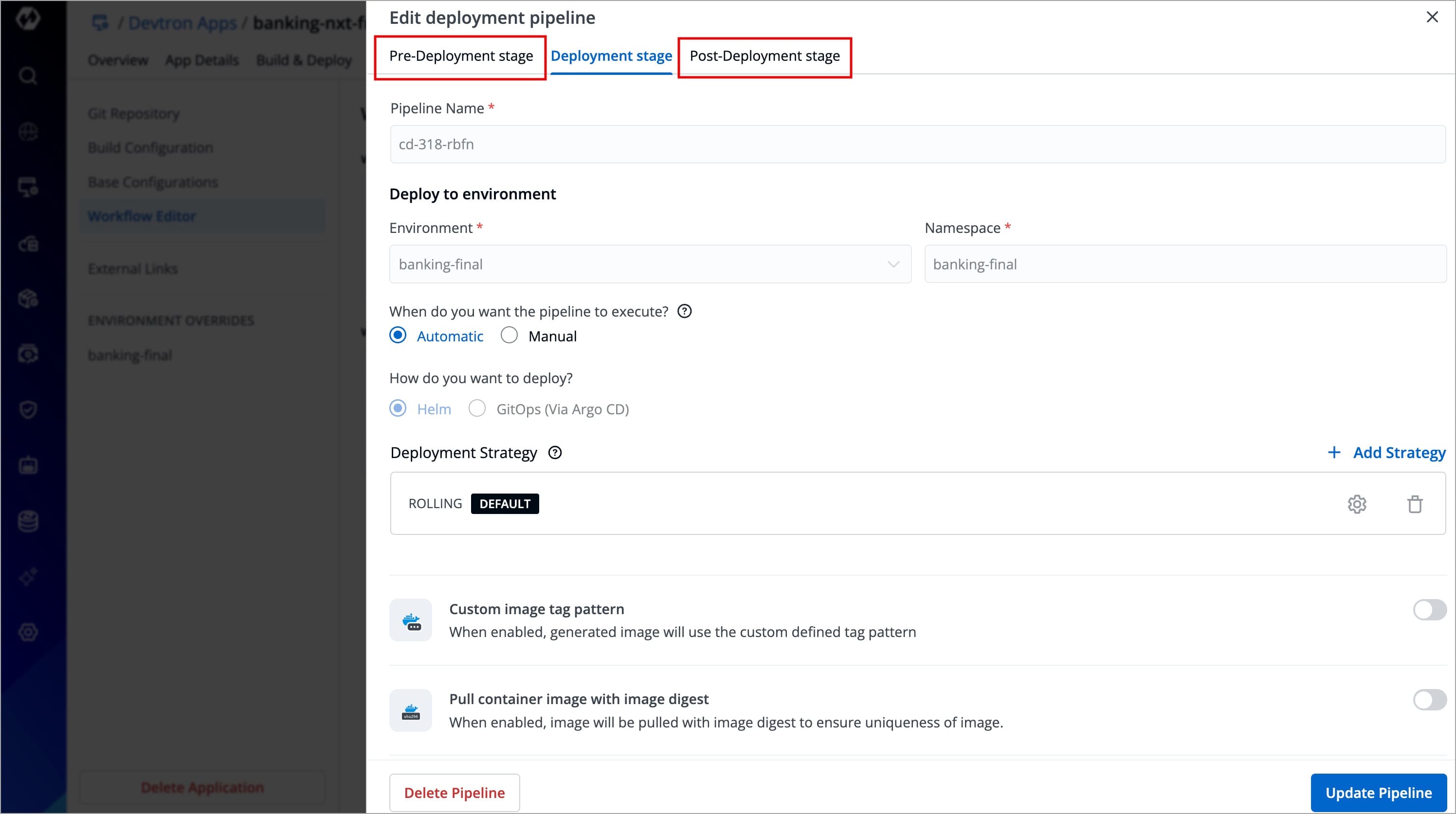 - Pre-deployment stage will trigger automatically when the build image is available.