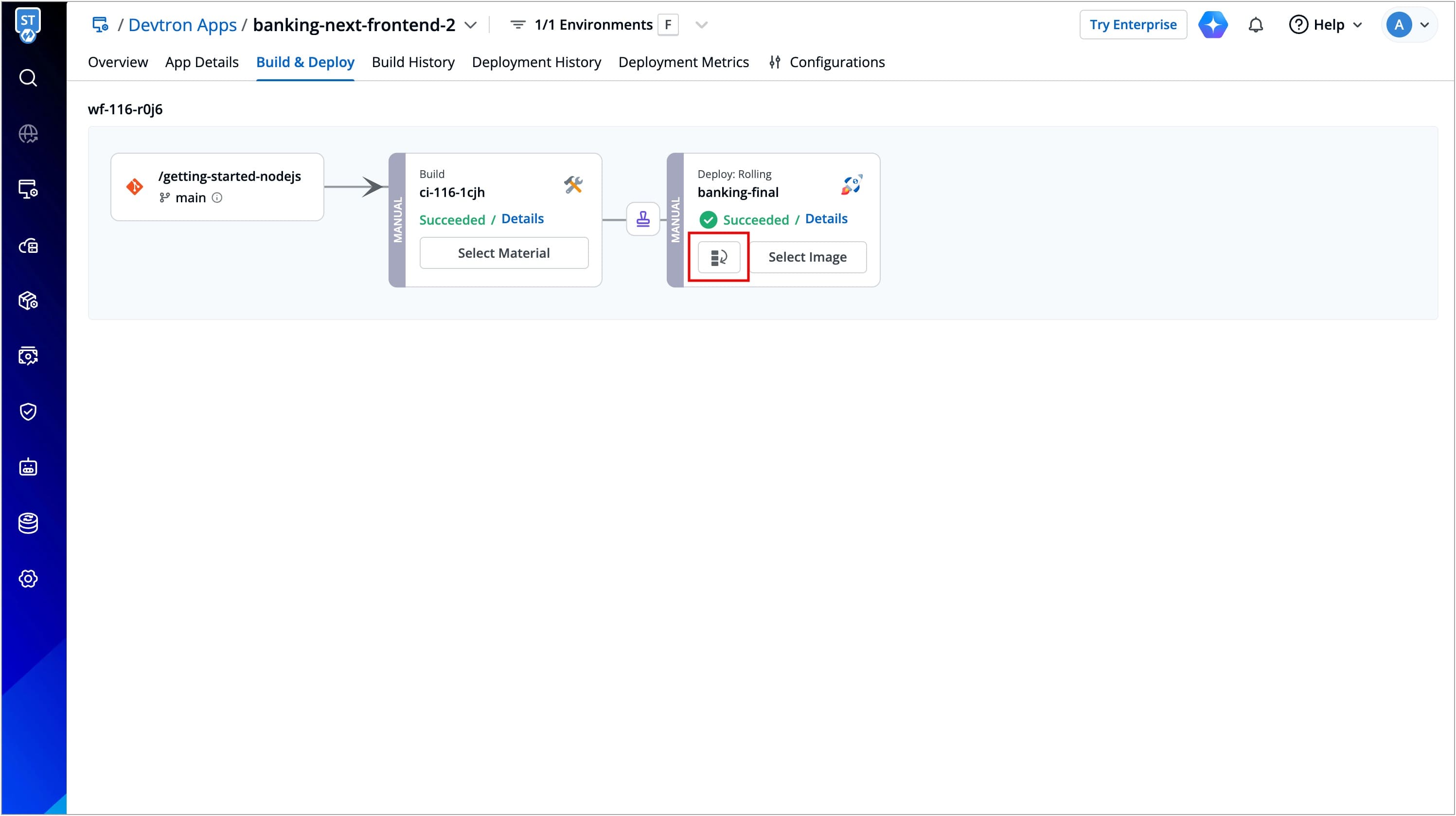 Config deployed with selected imageand if the configuration is missing in the selected previously deployed image, it will show asConfig Not Available. In such cases, you can select eitherLast saved configorLast deployed config.