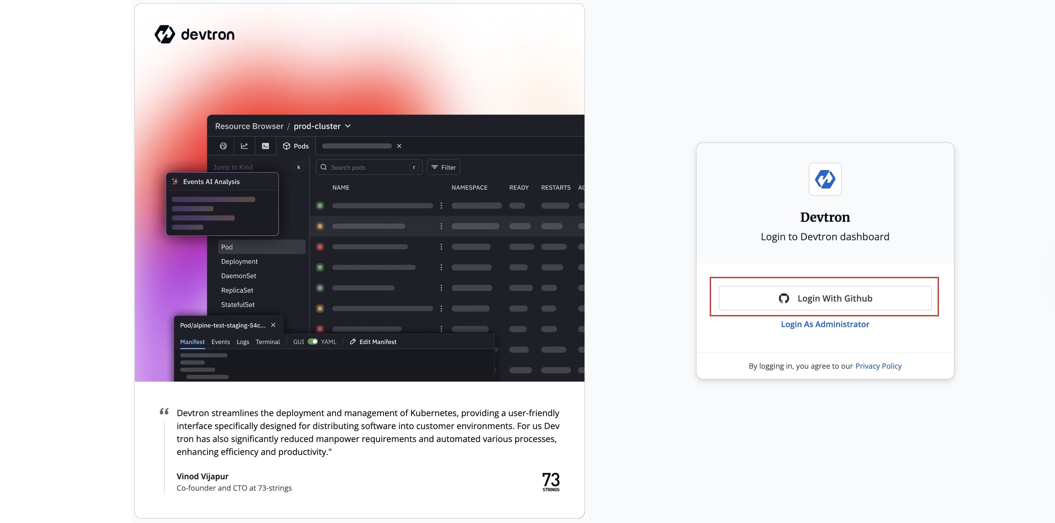 Setting up GitHub SSO enables you to authenticate using your GitHub account, ensuring secure access to Devtron without the need for passwords. This document provides you step-by-step instructions on setting up GitHub SSO in Devtron.