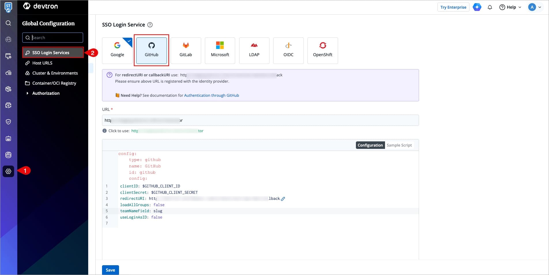 To configure the GitHub SSO in Devtron, follow the below steps of instructions: