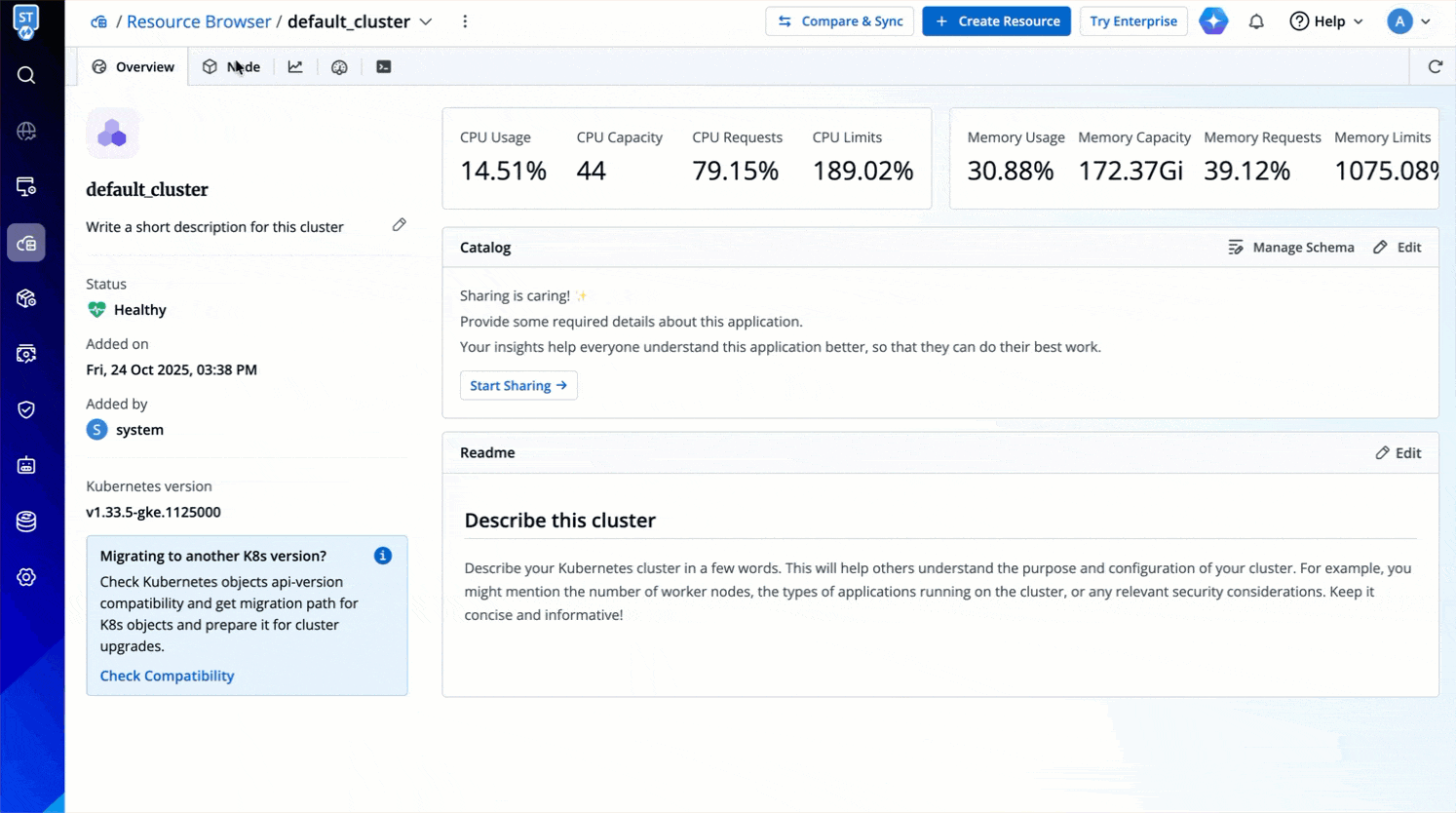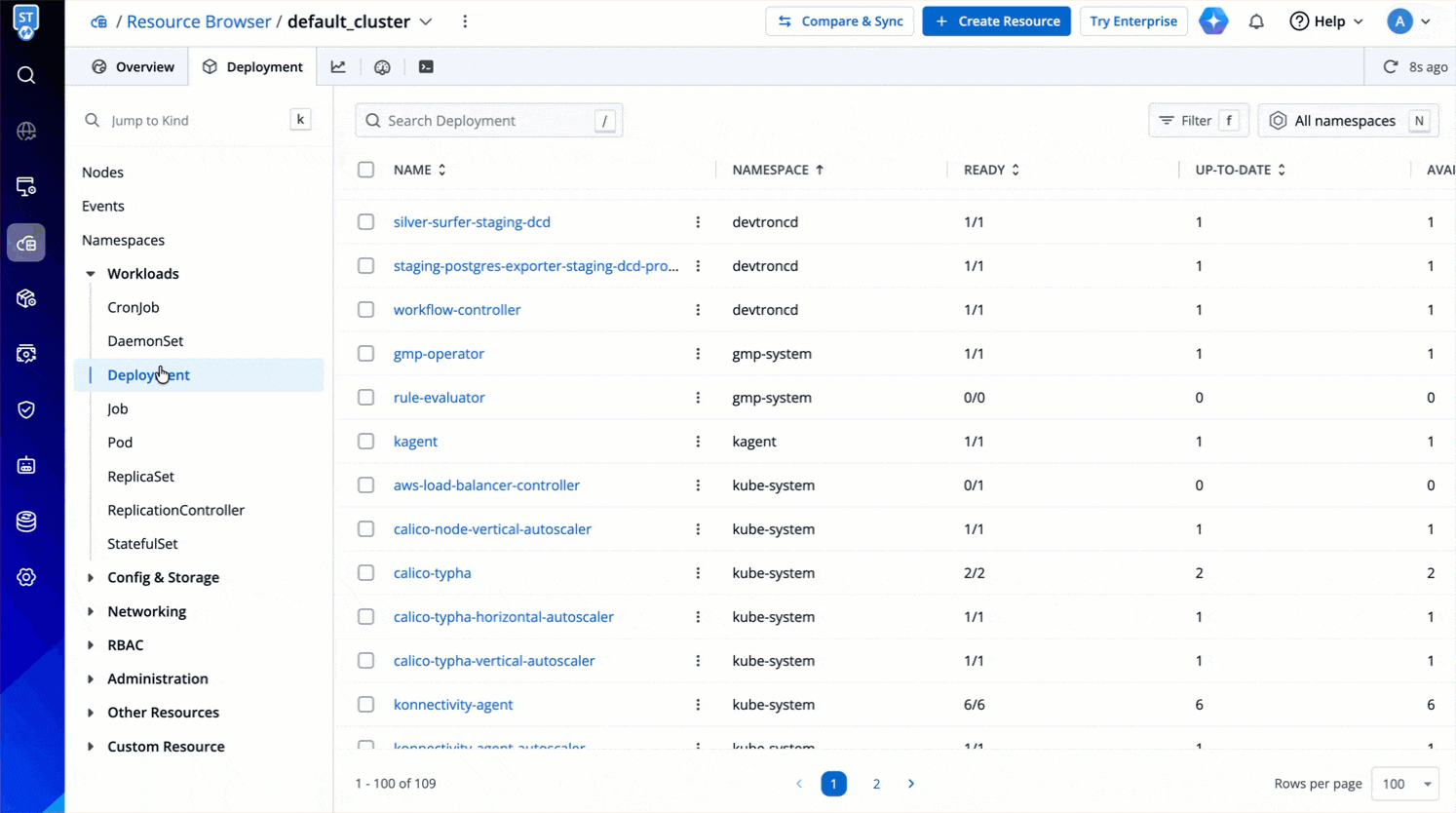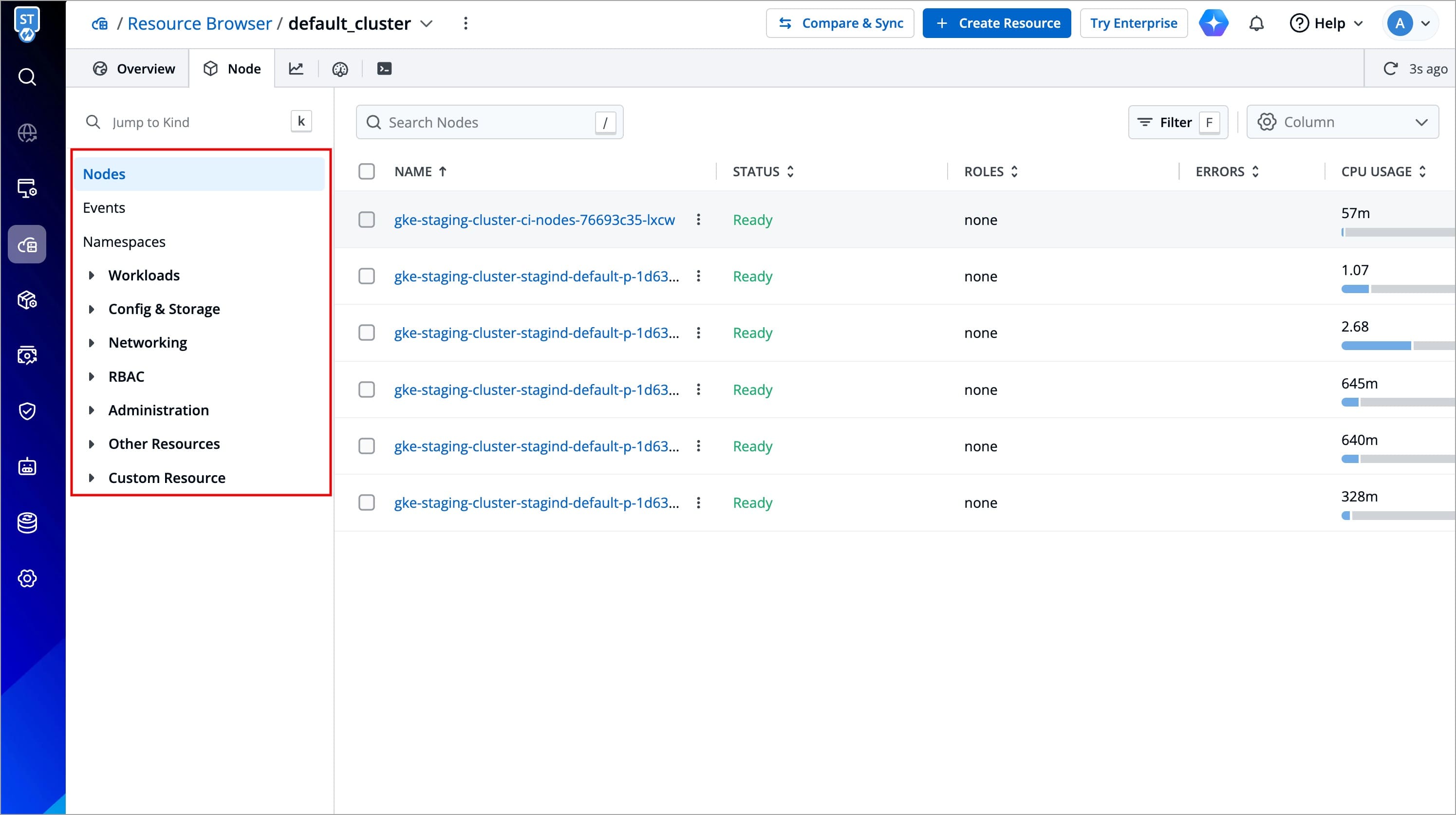 Resource kinds displayed upfront for you to manage: