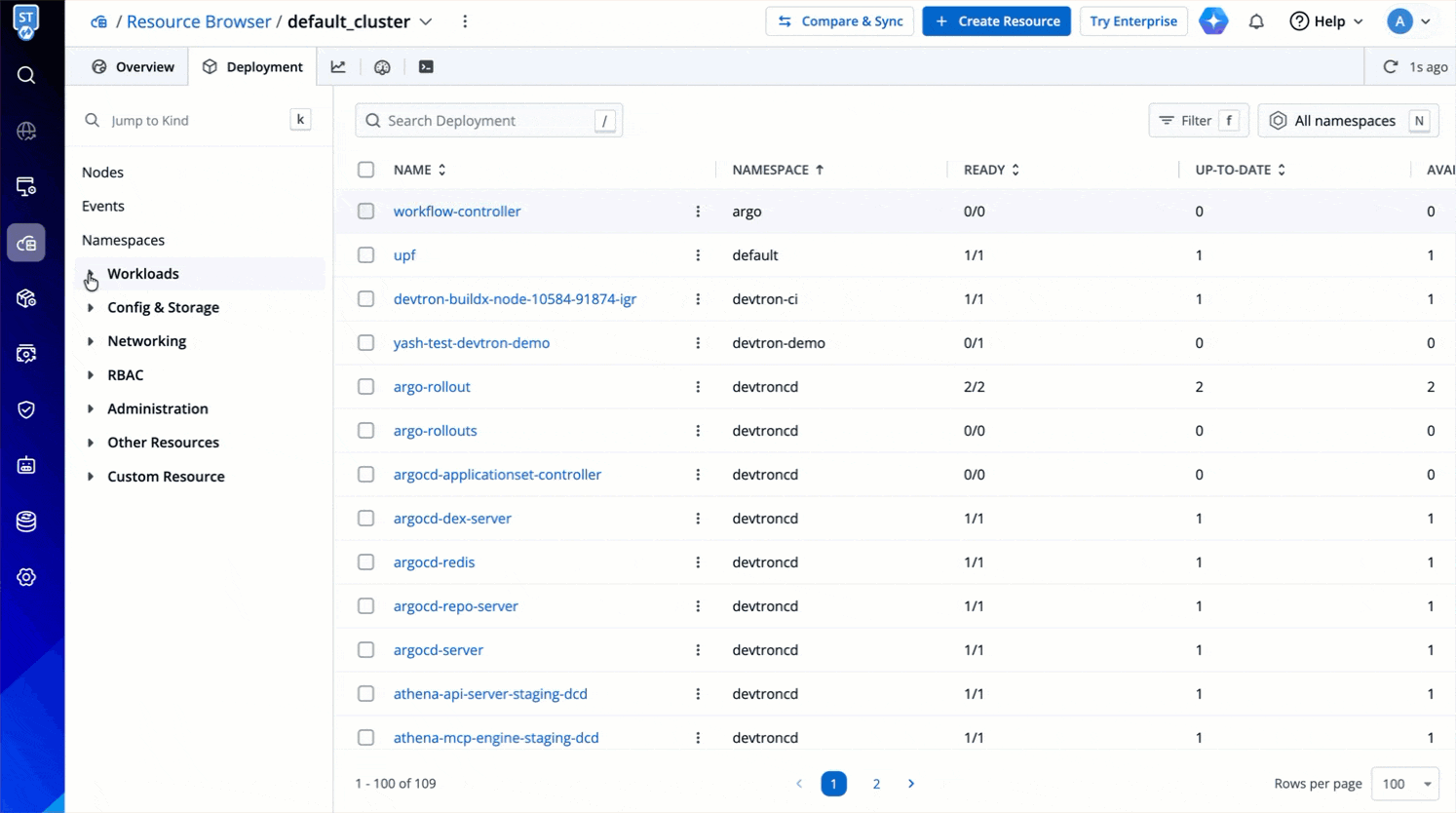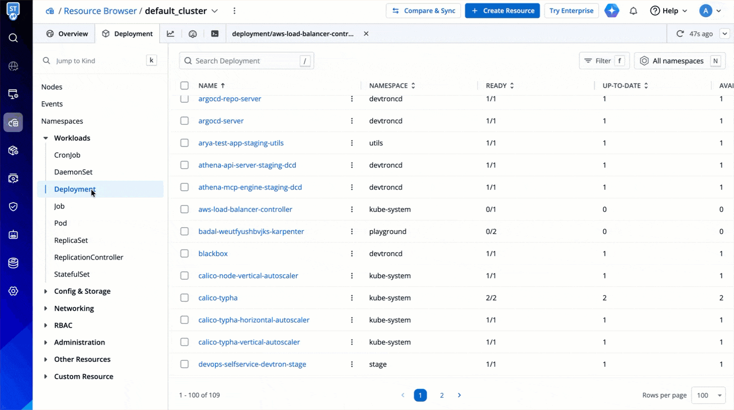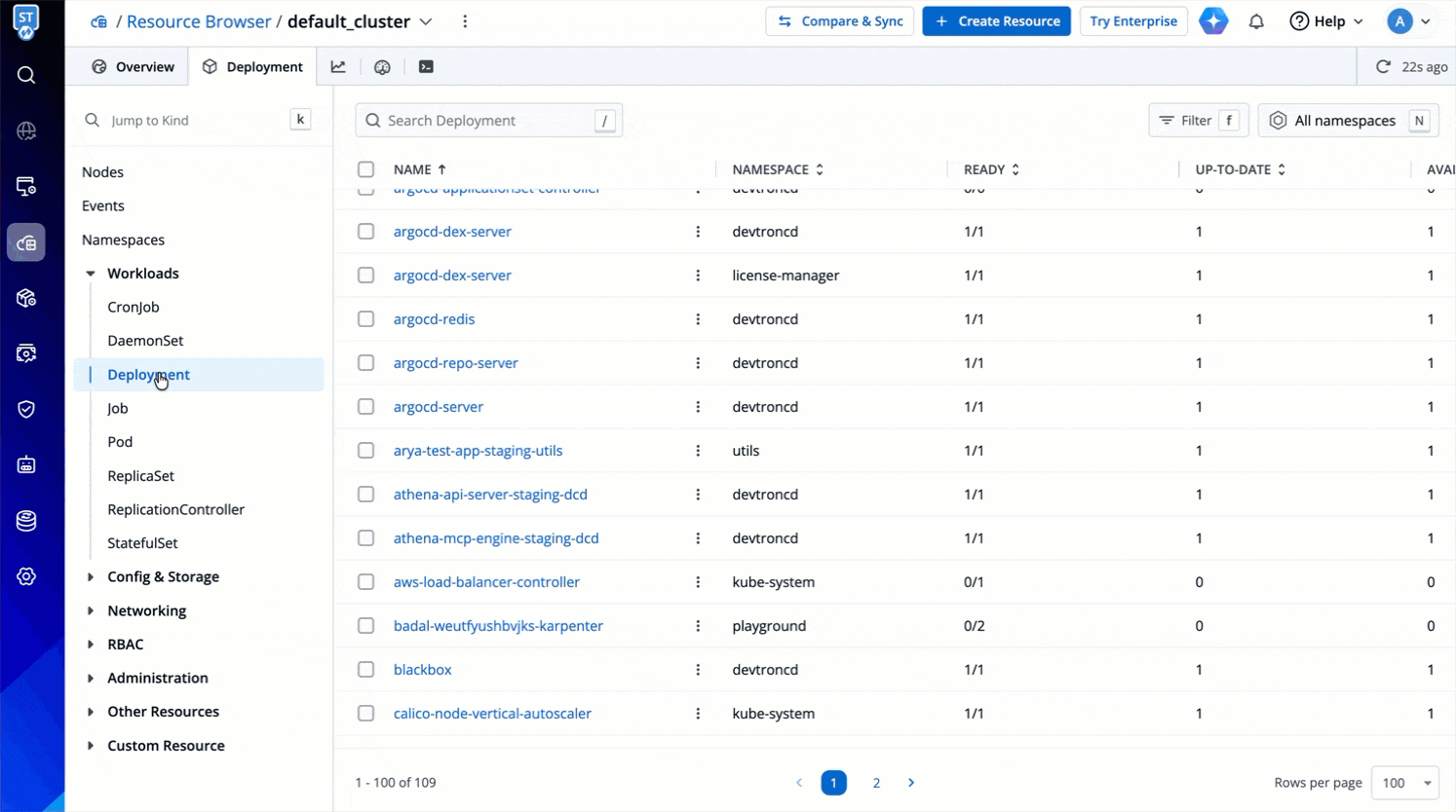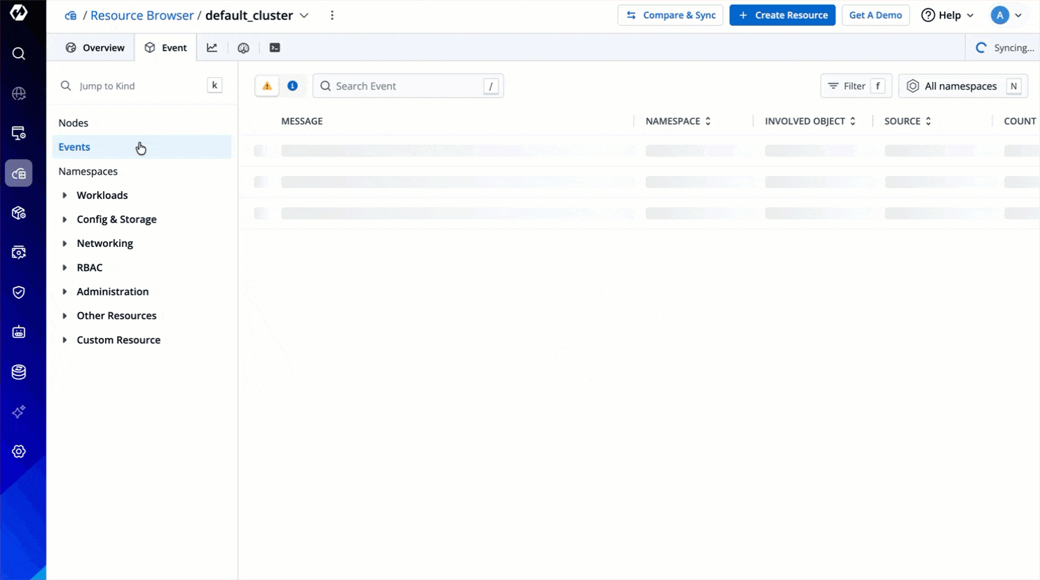 Resource kinds displayed upfront for you to manage: